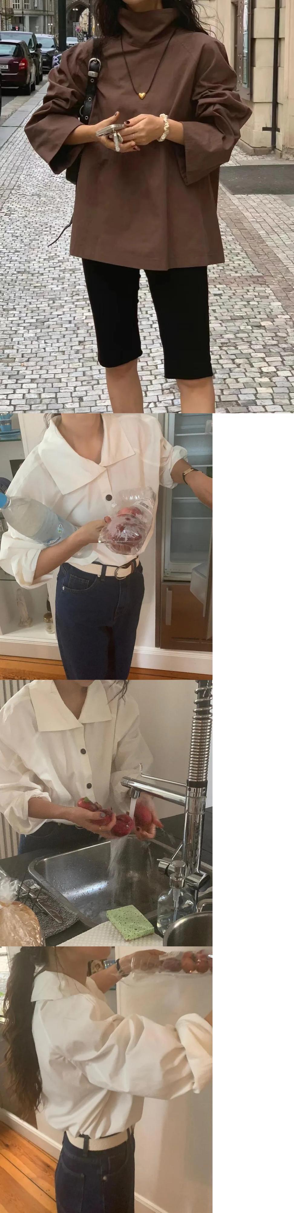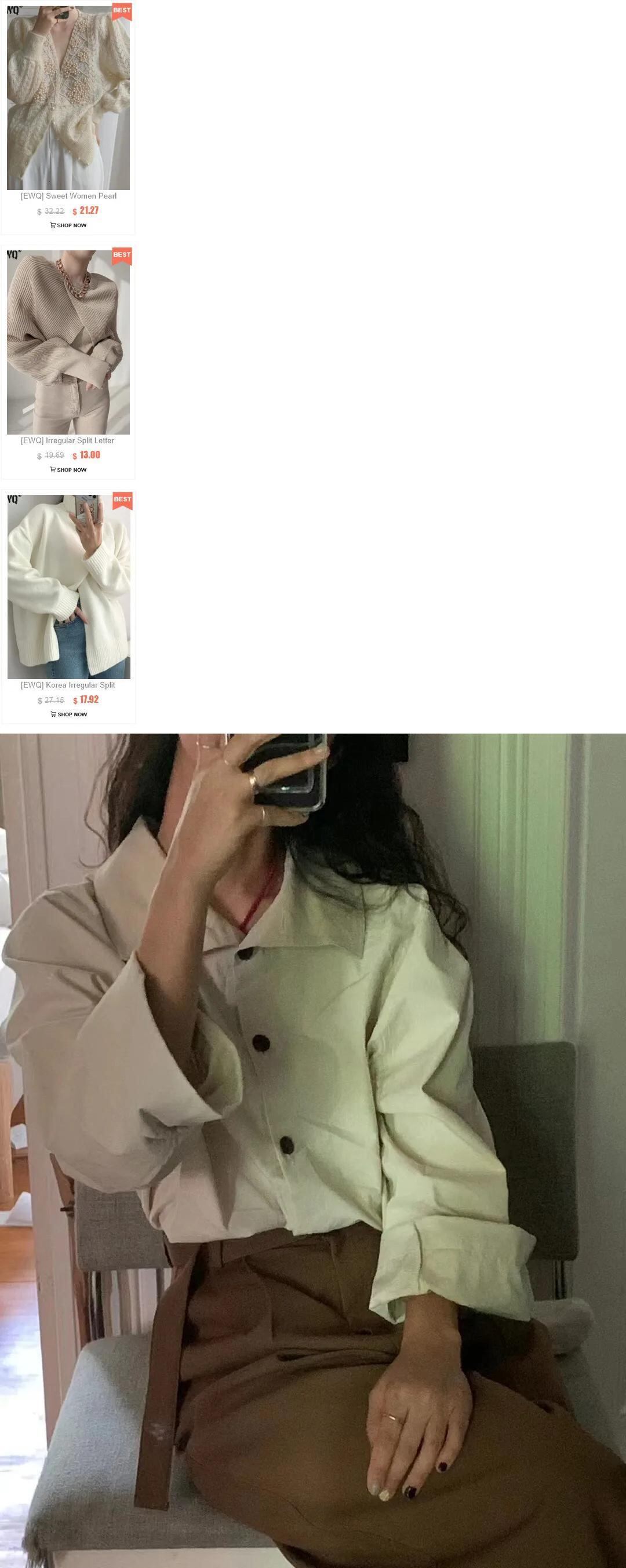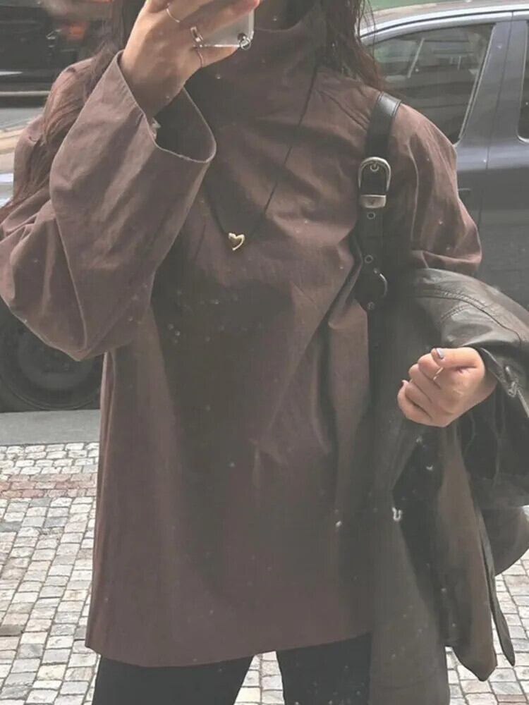 [EWQ] タートルネック シングルブレスト シャツ レディース 長袖 ゆったり 秋冬 16U5313 ロング オータム 秋物 ウィンター 冬物