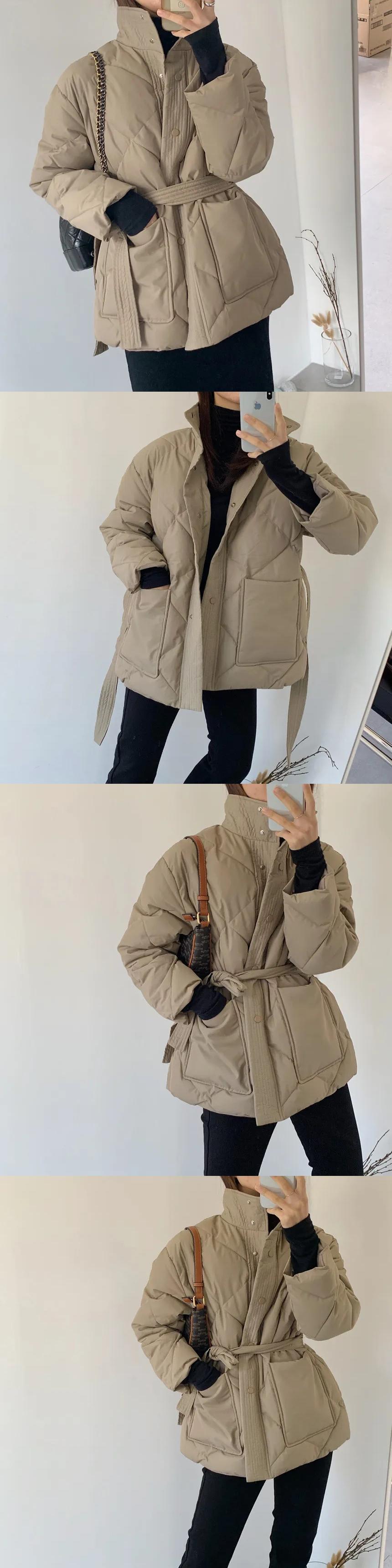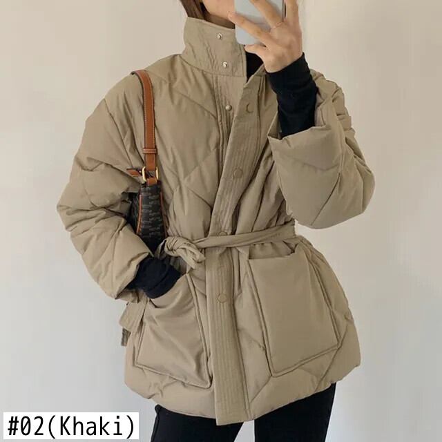 [EWQ] 冬多用途綿入りコート襟織綿暖かいビッグポケットレースアップジャケット 16U4776 コットン ウィンター 冬物