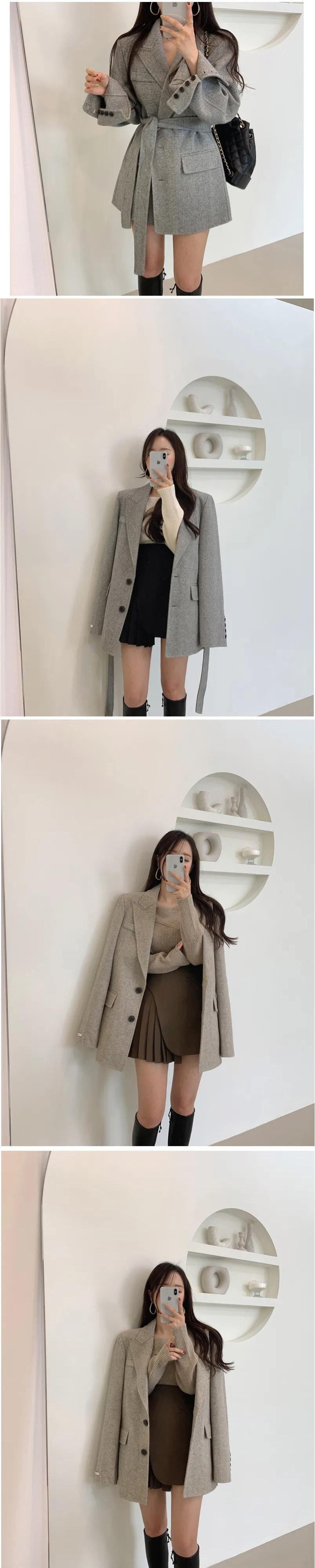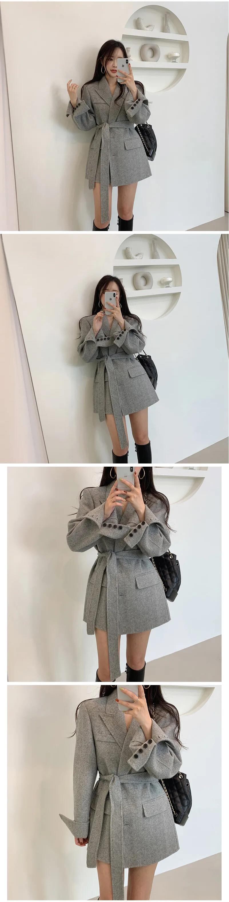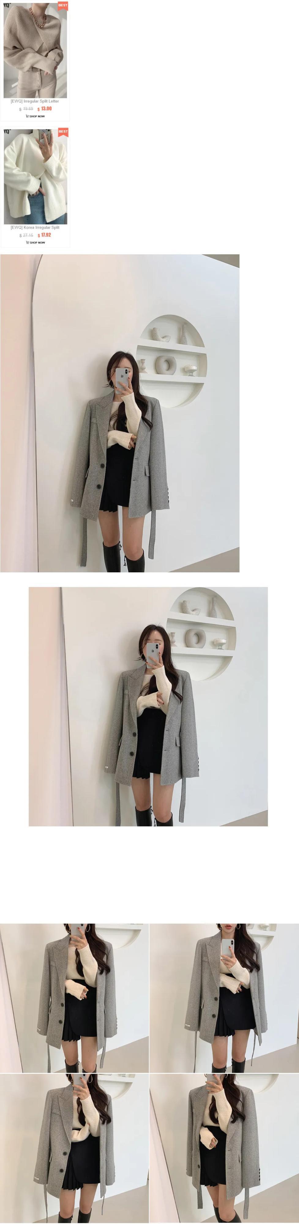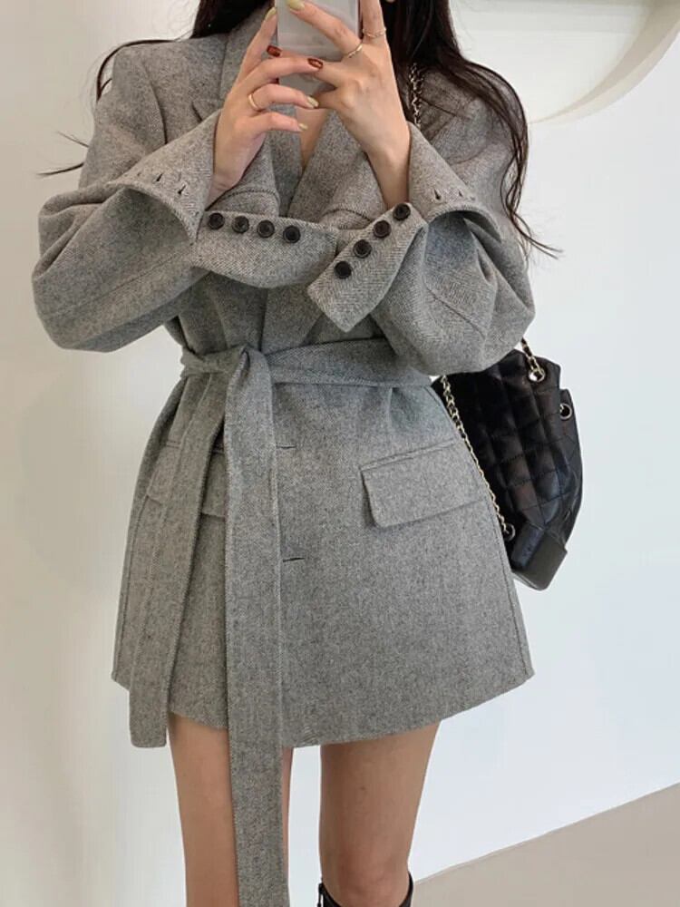 [EWQ] 包帯付きウールジャケット気質長袖ジャケットコート秋冬 16U4606 ロング オータム 秋物 ウィンター 冬物