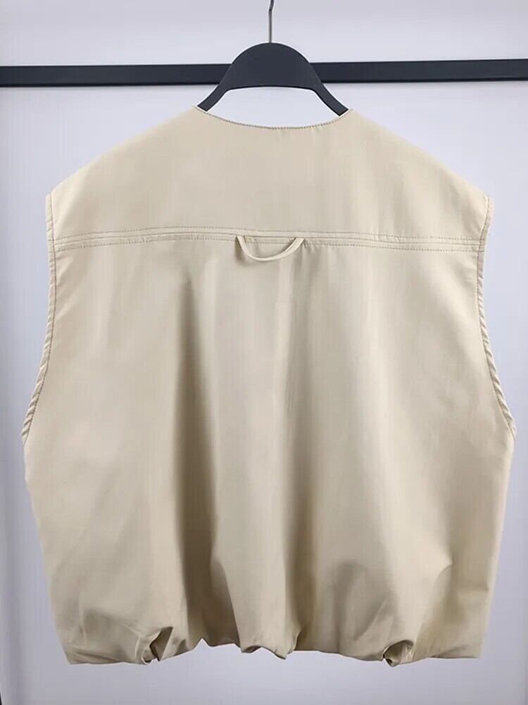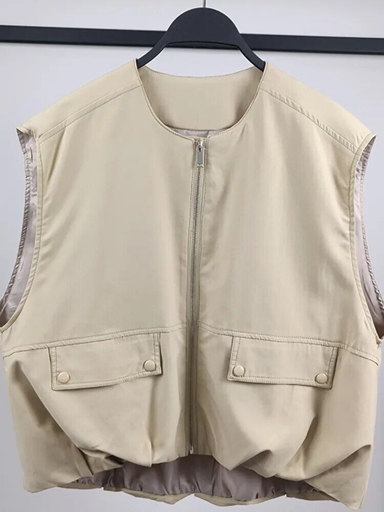 [EWQ] ルーズプリーツボトムコットンベスト O ネックノースリーブジャケットジッパーチョッキ秋冬 16U4742 オータム 秋物 ウィンター 冬物 Oネック