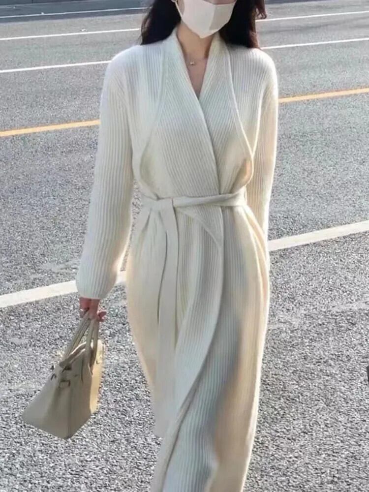 [EWQ] レースアップ丈カーディガンコート付き レディース カーキ 長袖 厚手 セーター ジャケット 秋冬 16U5348 ロング オータム 秋物 ウィンター 冬物