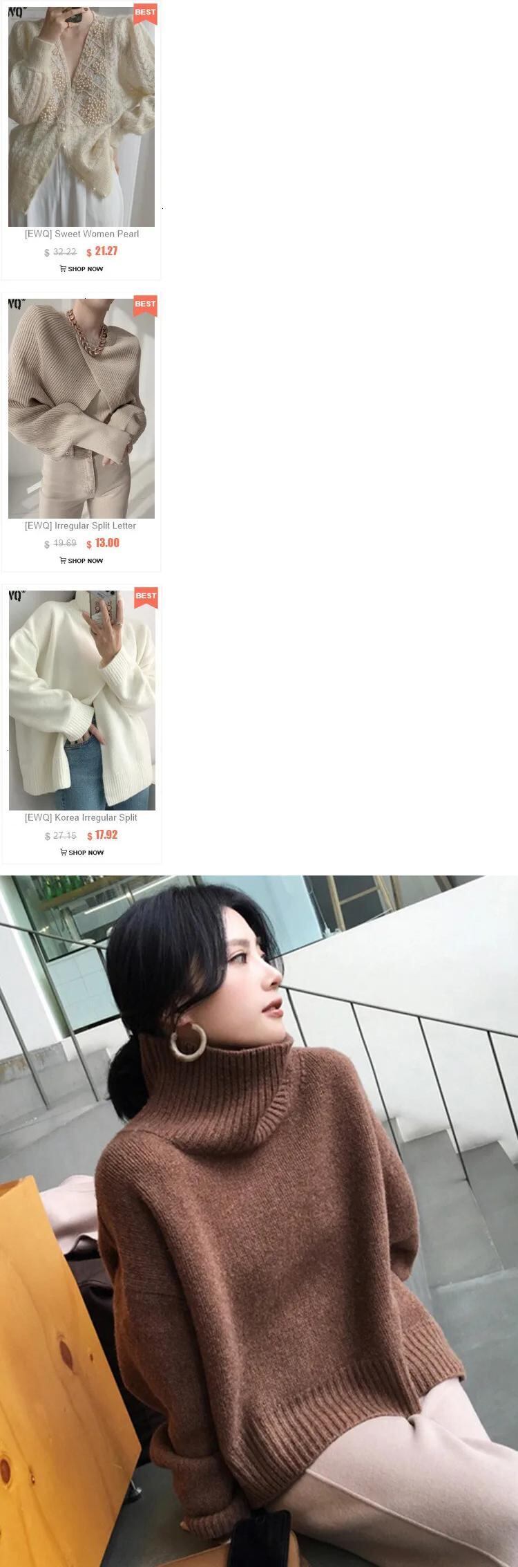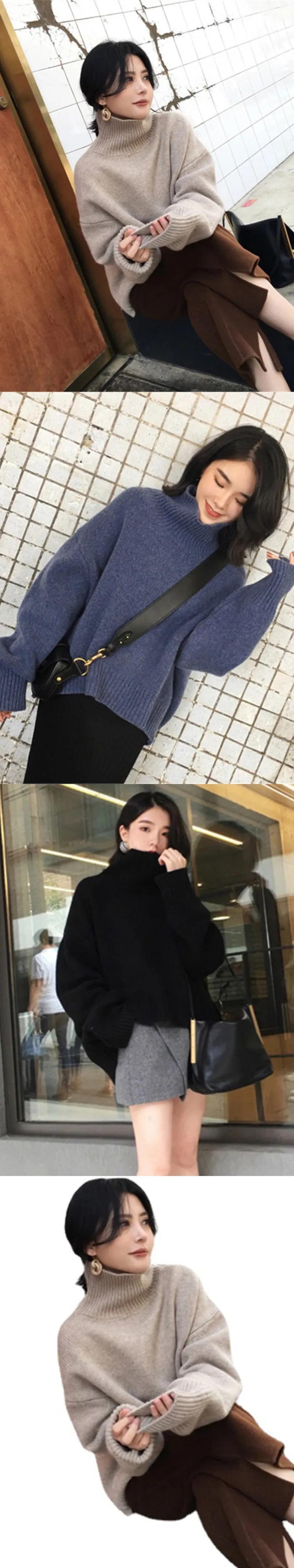 [EWQ] タートルネック肥厚セーター秋冬トレンディ長袖暖かさ黒プルオーバーニットトップ 16U5343 ロング ブラック オータム 秋物 ウィンター 冬物