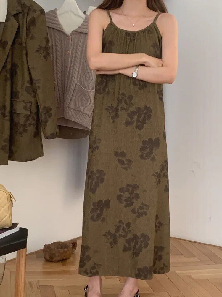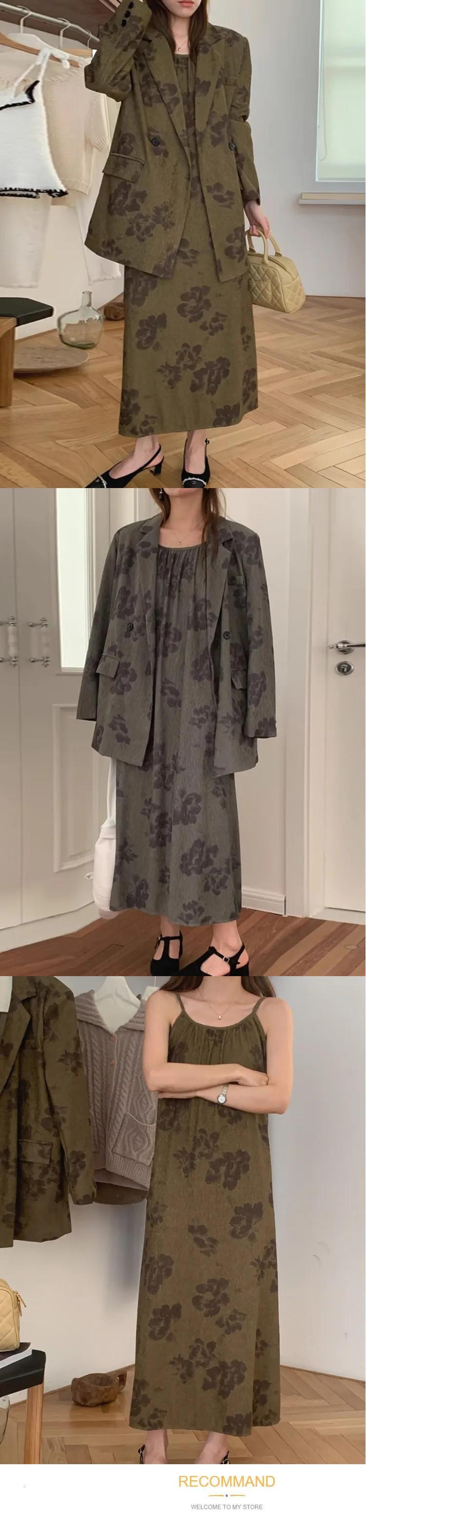 [EWQ] プリント 2 点セット レディース 長袖 ルーズ ブレザー コート + コントラスト スリング ドレス 秋冬 16U4193 ロング オータム 秋物 ウィンター 冬物