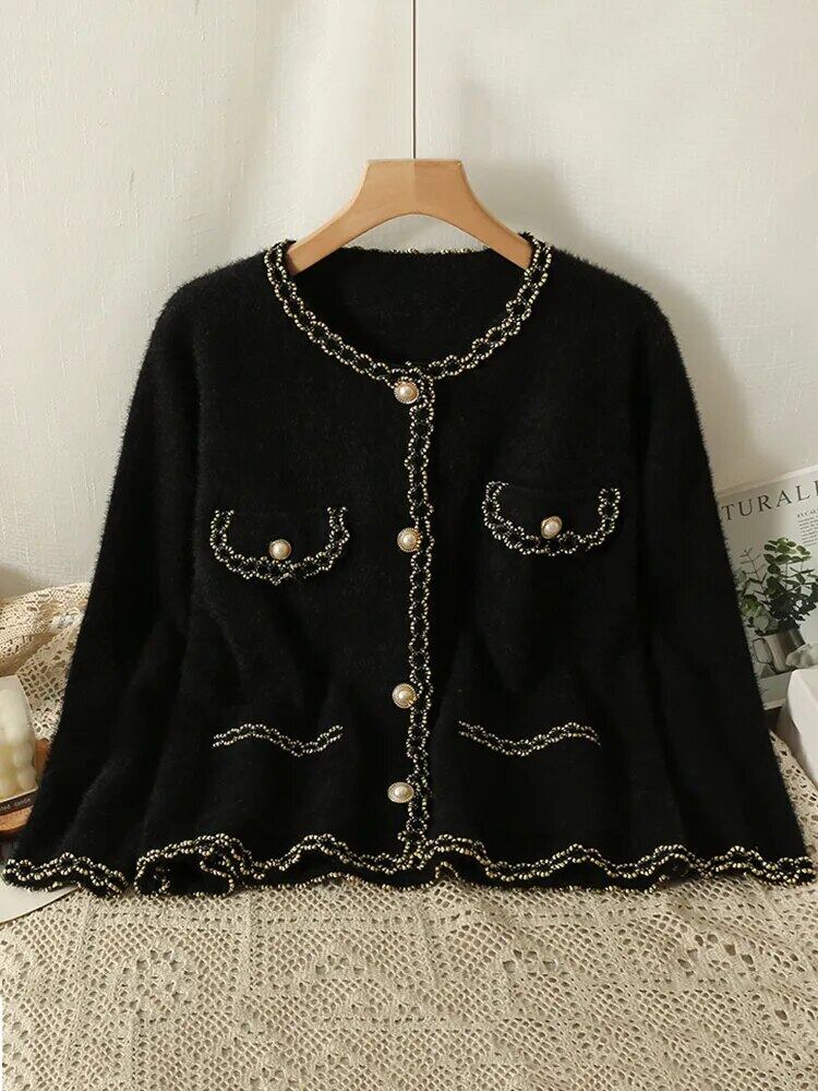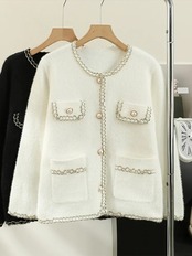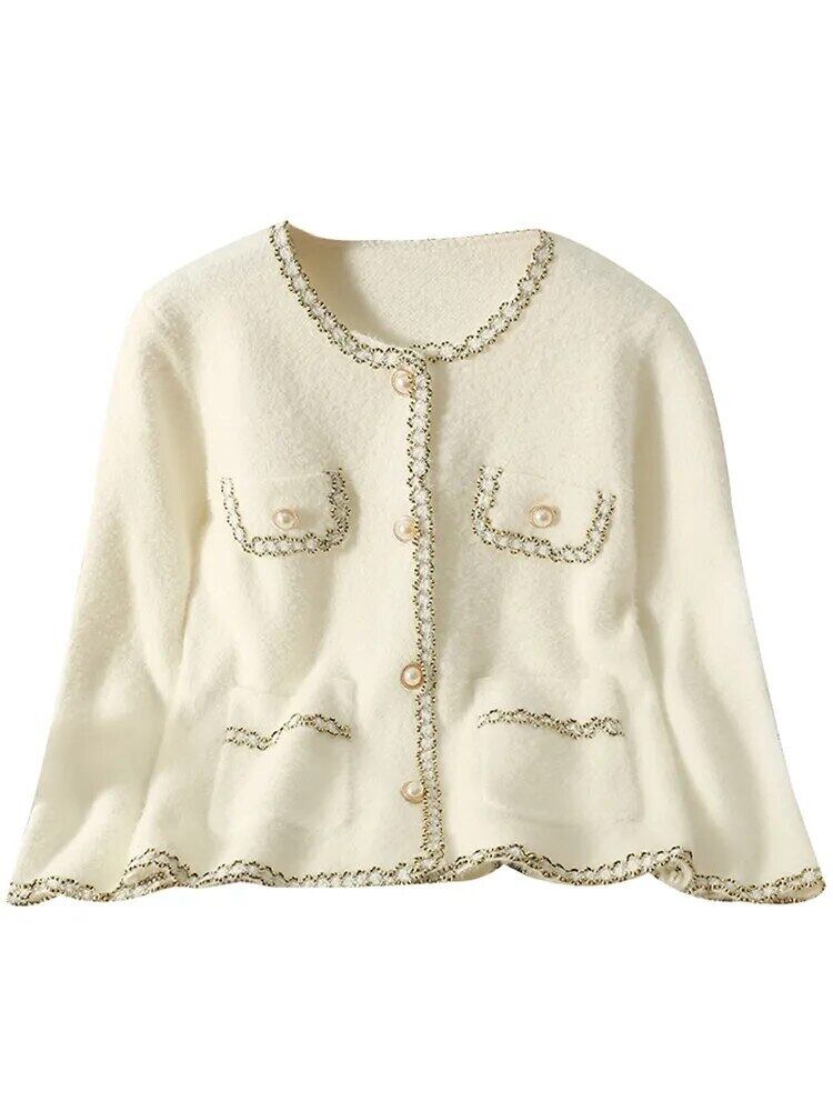 [EWQ] ライトスウィートカーディガンコートポケットパッチワークシングルブレストソフトセータージャケット秋冬 16U3755 大人ガーリー キュート カジュアル オータム 秋物 ウィンター 冬物 シルク