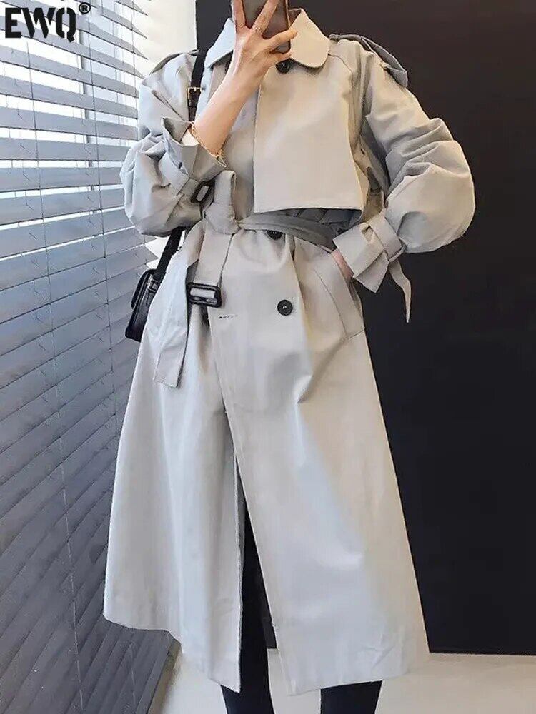 [EWQ] ダブルブレスト包帯トレンチジャケット長袖ルーズウインドブレーカーコート秋冬 16U3814 ロング オータム 秋物 ウィンター 冬物