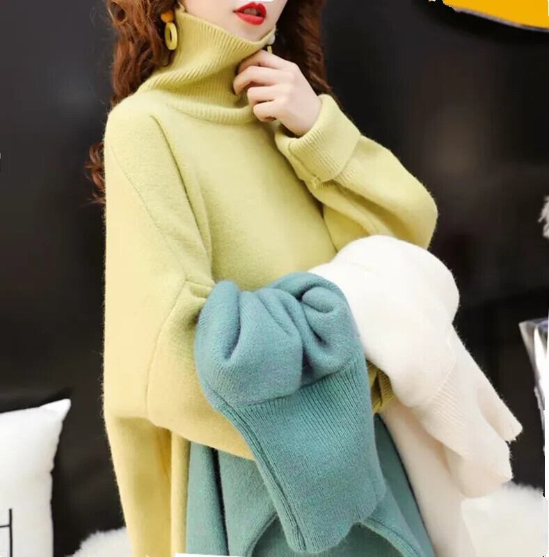 [EWQ] タートルネックセーター長袖プルオーバーニットトップレッドクリスマス秋冬 ロング オータム 秋物 ウィンター 冬物