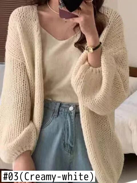 [EWQ] ルーズ秋薄いカーディガンコートソリッドカラーランタンスリーブセータージャケット秋潮ニットコート オータム 秋物