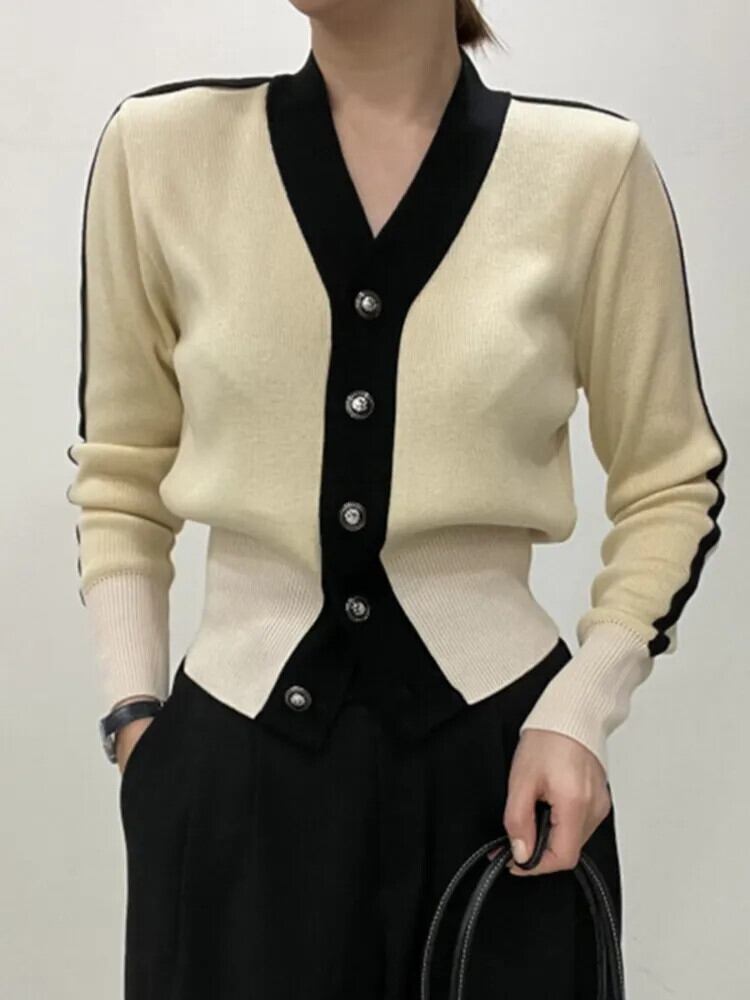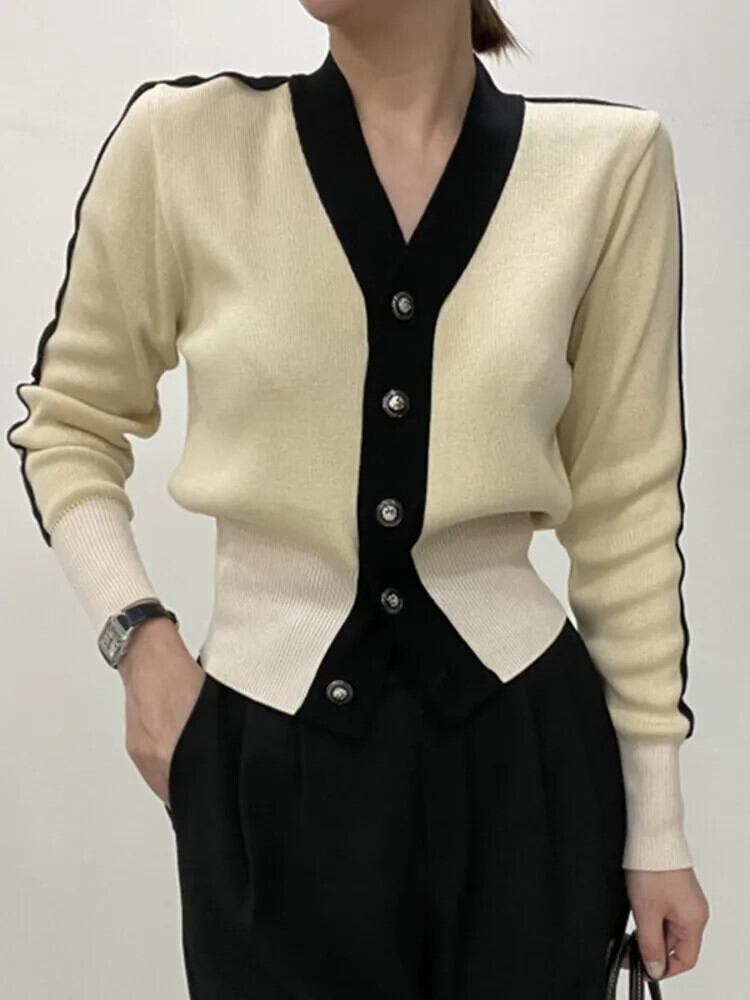 [EWQ] シングルブレスト パッチワーク ニット カーディガン コート 秋 長袖 コントラスト セーター ジャケット ニット コート U2506 ロング オータム 秋物