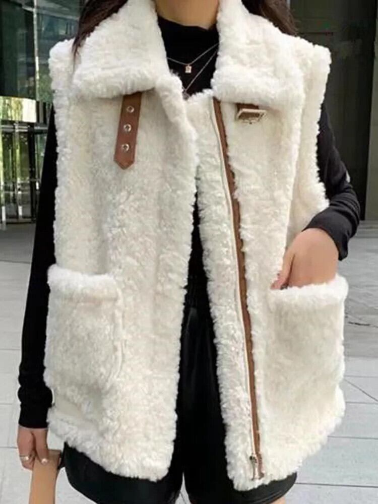 [EWQ] ベルベット ラムズウール ベスト レディース M-4XL ダブルポケット スプライシング ジップ チョッキ ノースリーブ ジャケット 秋冬 16U4696 オータム 秋物 ウィンター 冬物