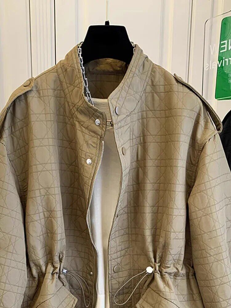 [EWQ] ジャケット長袖巾着ウエスト弾性厚手アウタージャケットコート秋冬 16U5012 ロング エラスティック 伸縮 オータム 秋物 ウィンター 冬物