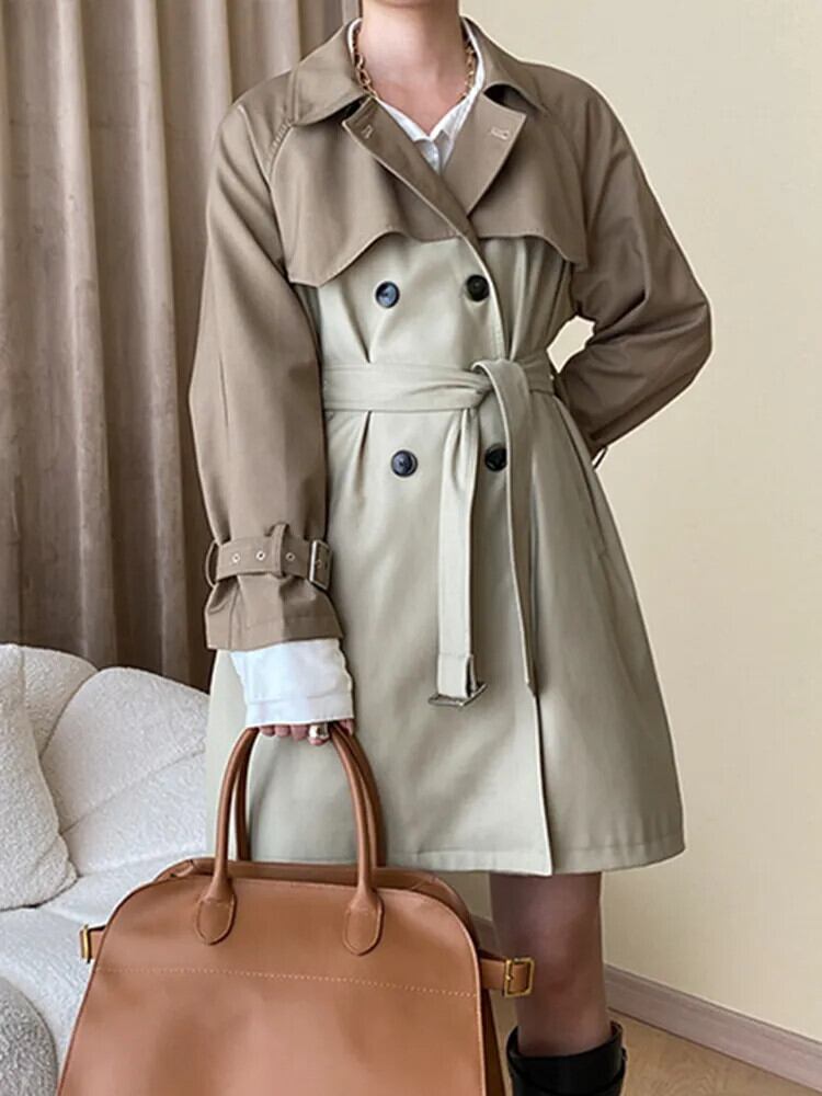 [EWQ] パッチワークコントラスト包帯付きウインドブレーカーコート オータムタイド ダブルブレスト ショートトレンチジャケット 16U2246 秋物