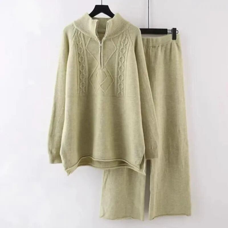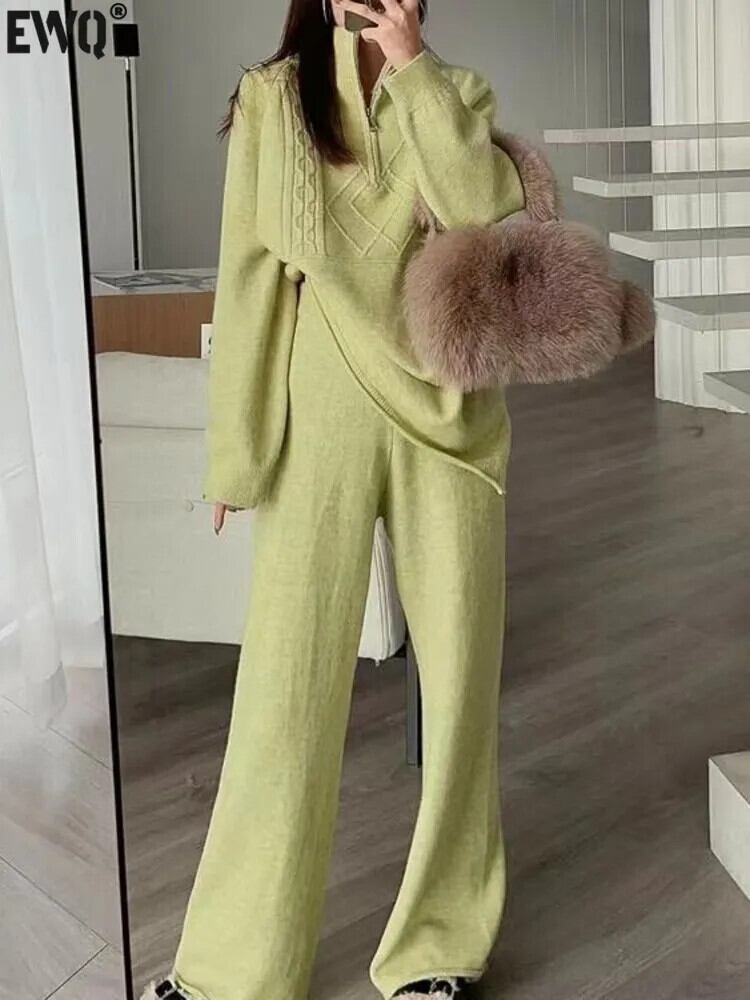 [EWQ] スタンドカラーセーターニットセット秋ルーズワイドレッグパンツ 2 ピース冬暖かいスーツ U5396 オータム 秋物 ウィンター 冬物 ワイドパンツ