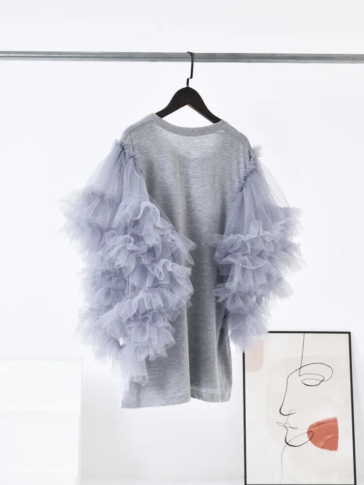 [EWQ] ビッグサイズ Tシャツメッシュパッチワーク半袖ルーズ Tシャツトップ夏潮 O ネックトップ R3106 ショート ハーフスリーブ サマー 夏物 Oネック