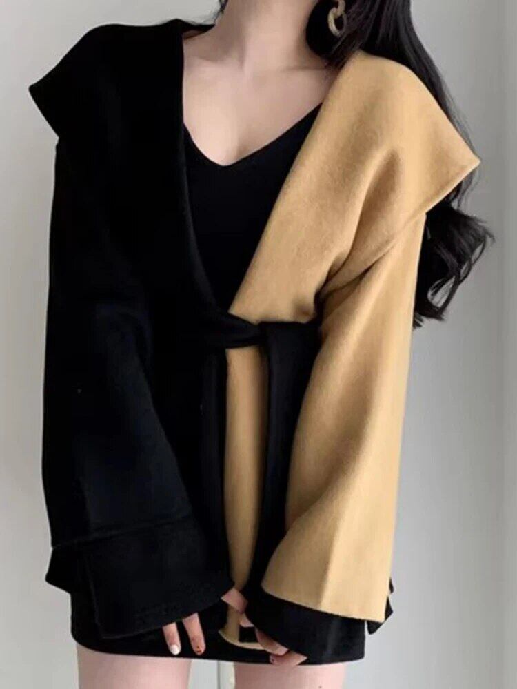 [EWQ] 包帯付きウールコート長袖パッチワークコントラストウールジャケット秋冬新作 16U5285 ロング オータム 秋物 ウィンター 冬物