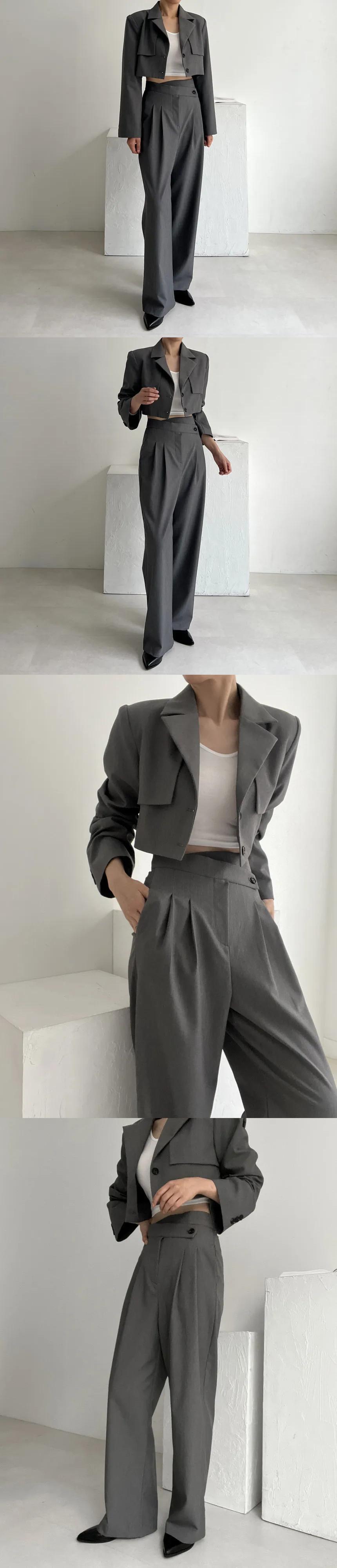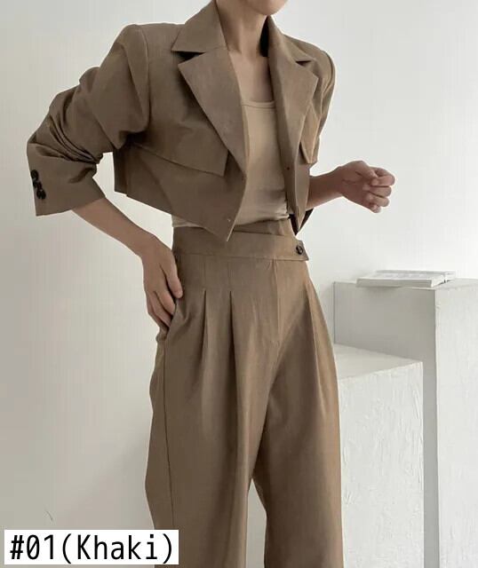[EWQ] ラペルショートスーツジャケット + ハイウエストスーツパンツ 2 点セット カーキパンツとブレザー秋 ハイウェスト オータム 秋物
