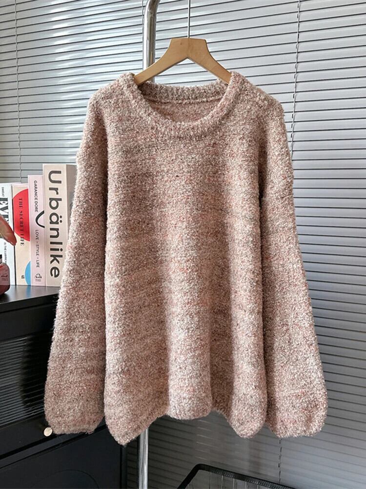 [EWQ] 甘いピンクセーター長袖ルーズプルオーバーニットトップ秋冬 16U5263 ロング 大人ガーリー スウィート キュート カジュアル オータム 秋物 ウィンター 冬物