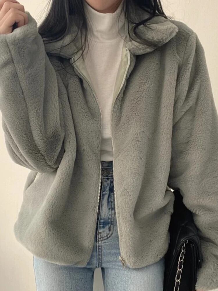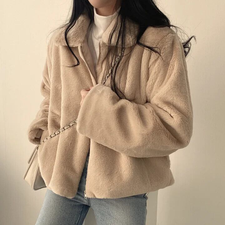 [EWQ] ジッパーぬいぐるみフリース Caot ルーズ多用途肥厚長袖アプリコットジャケット秋冬 16U5233 ロング オータム 秋物 ウィンター 冬物