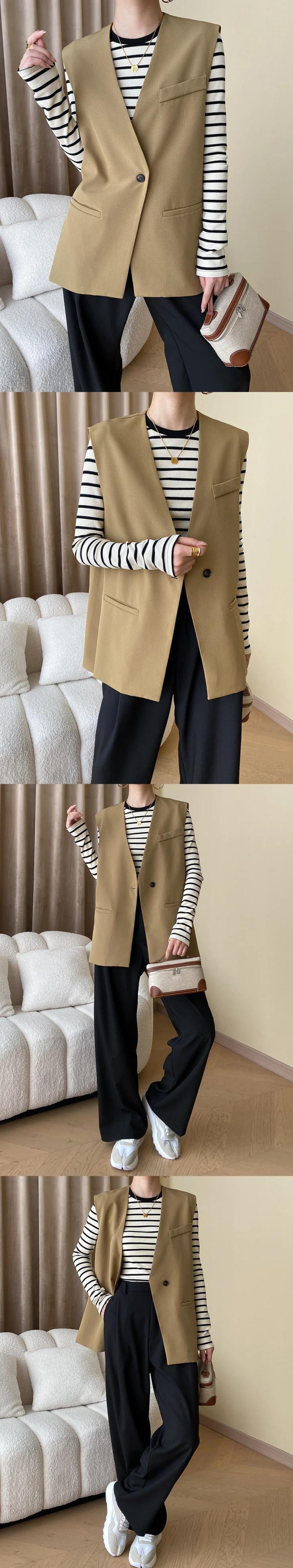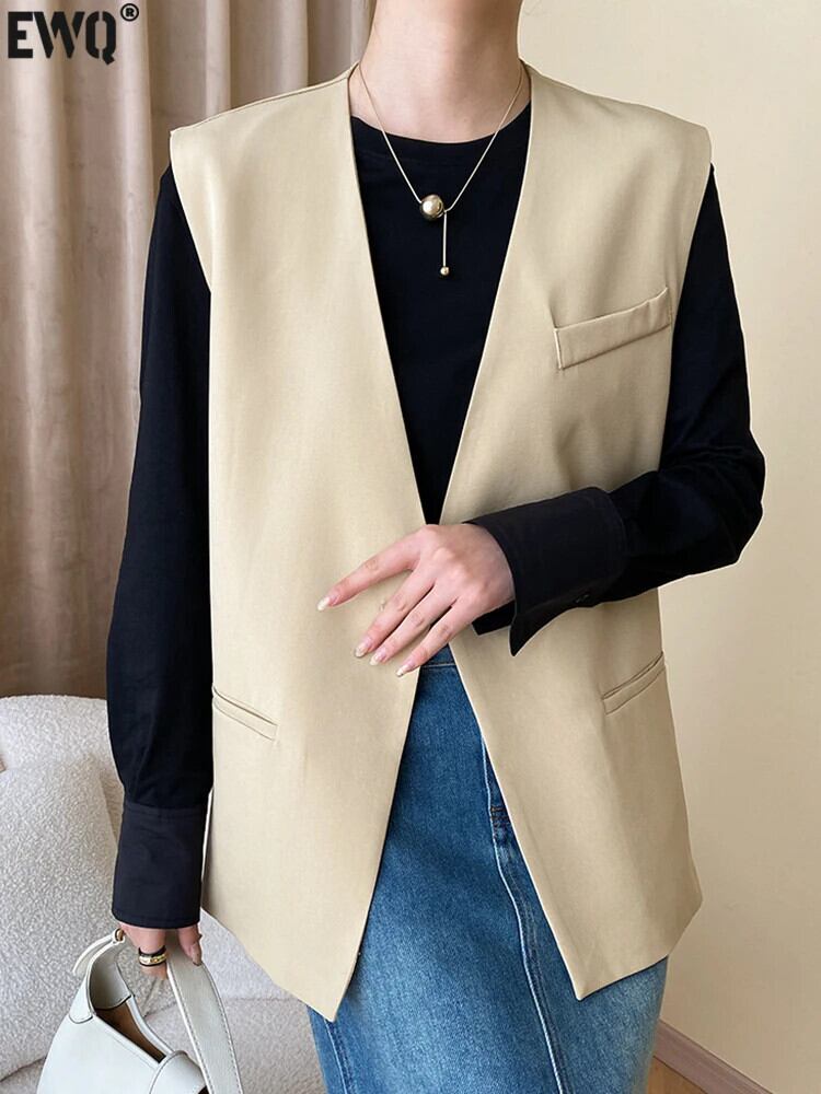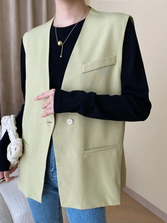 [EWQ] ワンボタンスーツベストアウターノースリーブジャケット秋オフィスレディカーキトップ 6U2244 オータム 秋物 会社 学校 通勤や通学にも