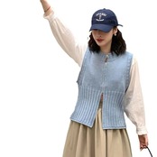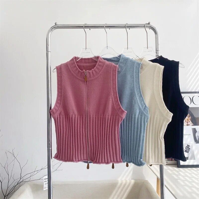 [EWQ] 甘い O ネックノースリーブレディースドレス美しいニットトップスシックベージュセータージッパーチョッキ秋 16U4265 大人ガーリー スウィート キュート カジュアル オータム 秋物 Oネック