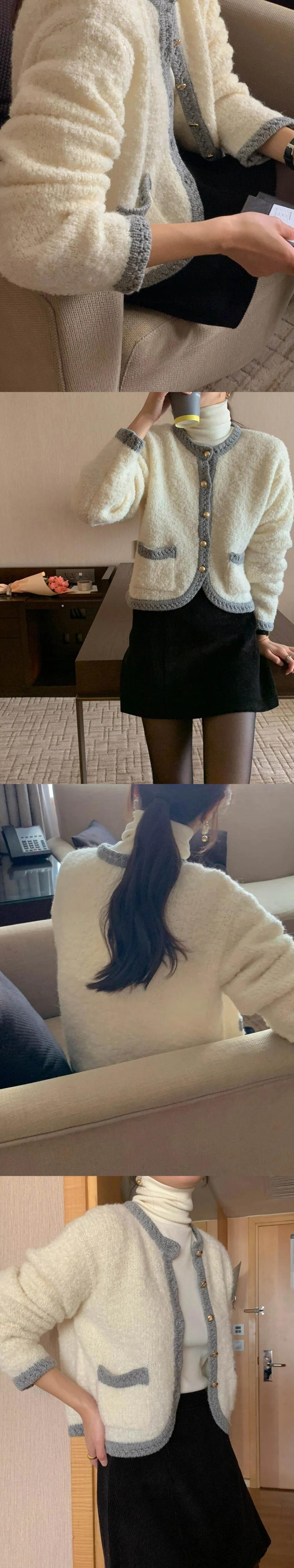 [EWQ]シックコントラストカラー織りOネックシングルブレスト長袖ツイードジャケットカジュアルルーズレディースコート秋冬 ロング オータム 秋物 ウィンター 冬物