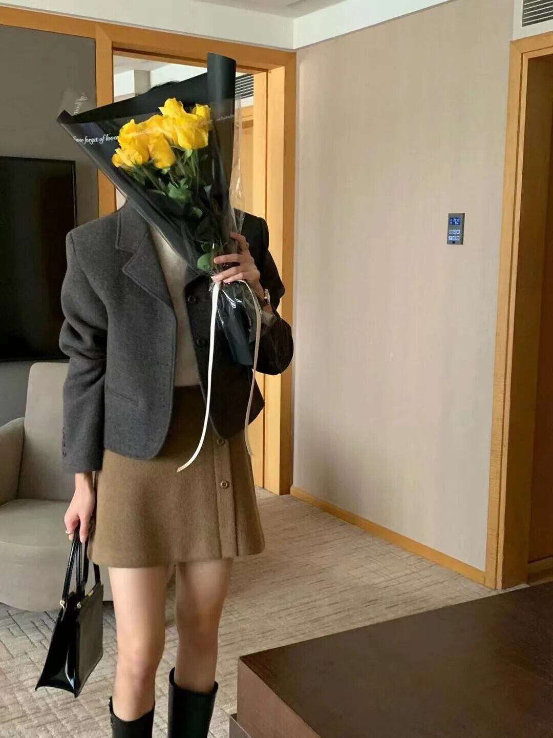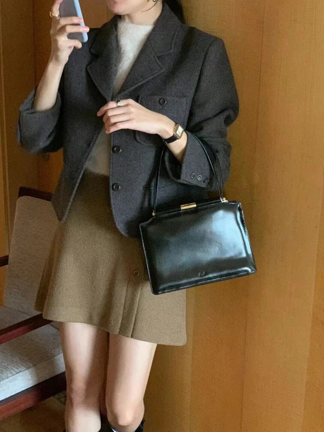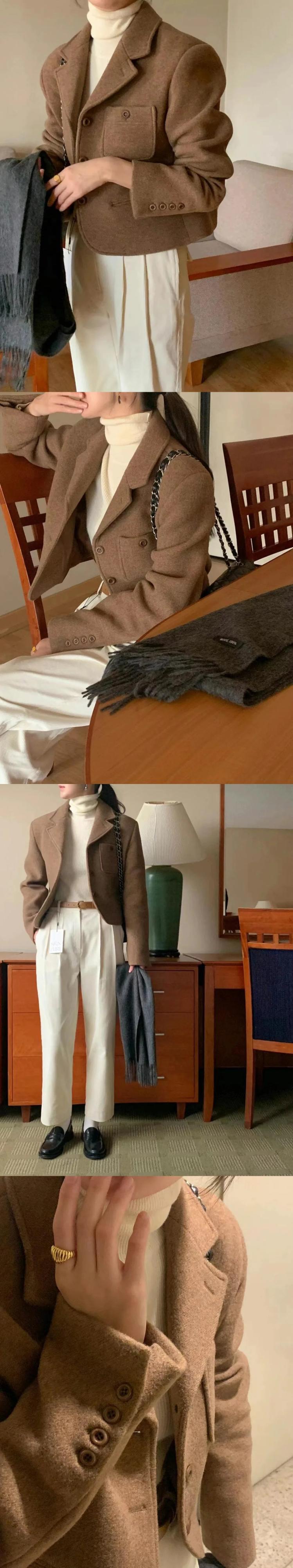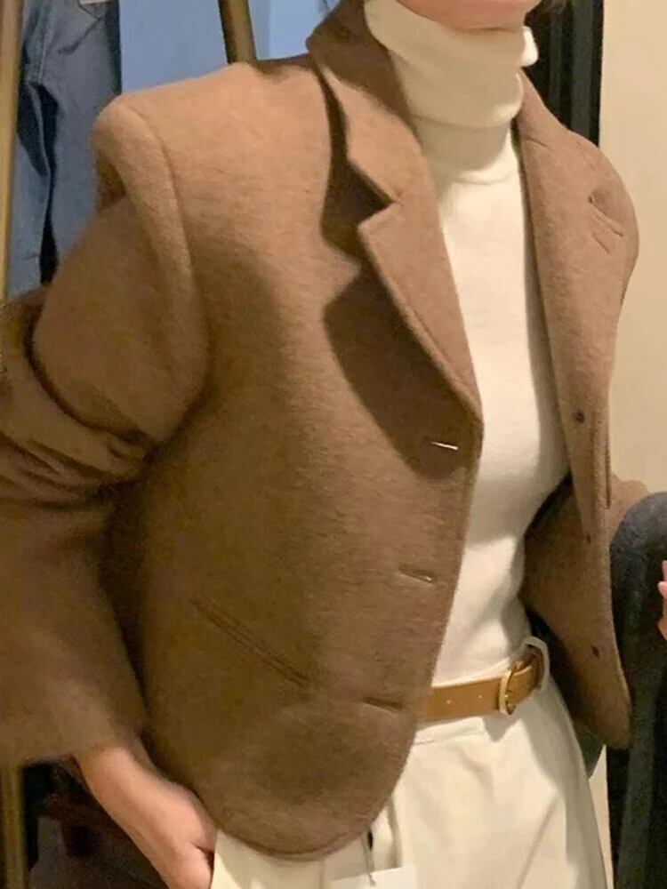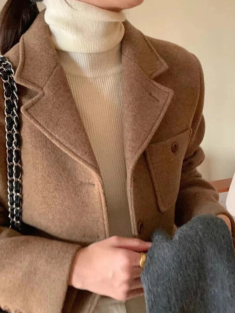 [EWQ] シックコーヒーウールコートノッチシングルブレストブレザールーズウールブレンドジャケット秋冬 オータム 秋物 ウィンター 冬物