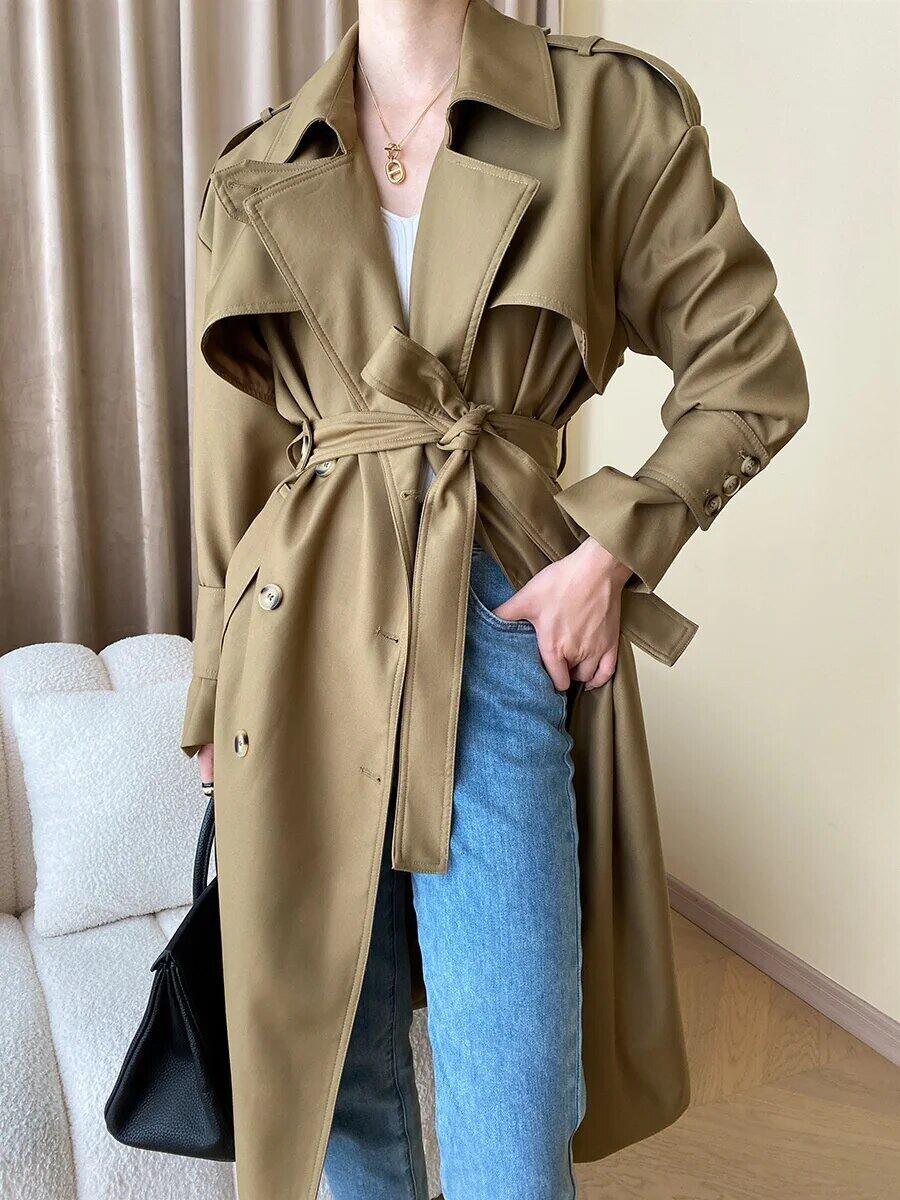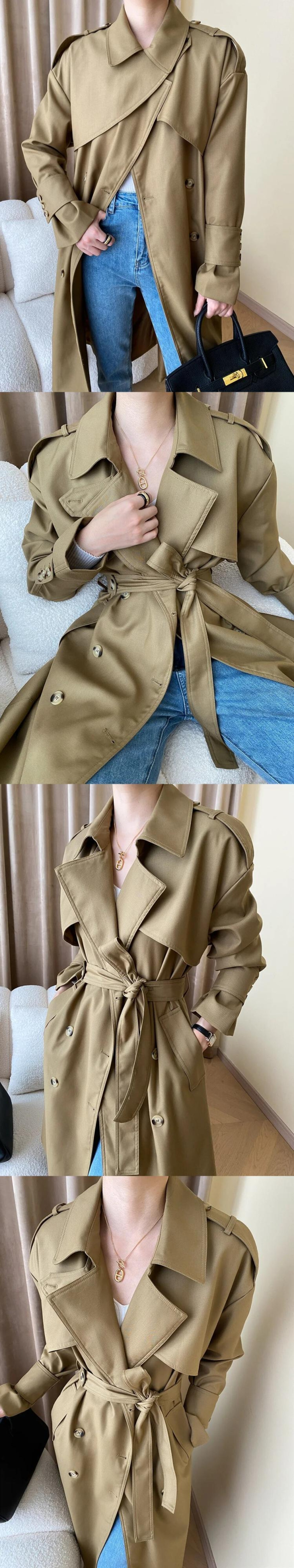 [EWQ] ダブルブレスト ウインドブレーカー コート レディース 長袖 包帯付き トレンチ ジャケット アウター 秋潮 57 ロング オータム 秋物