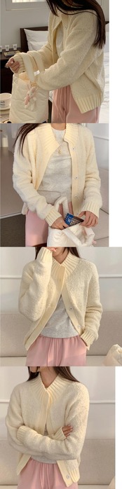 [EWQ] クリーミーホワイト O ネック シングルブレスト ニット カーディガン セーター ルーズ ニット トップス 16U5645 Oネック