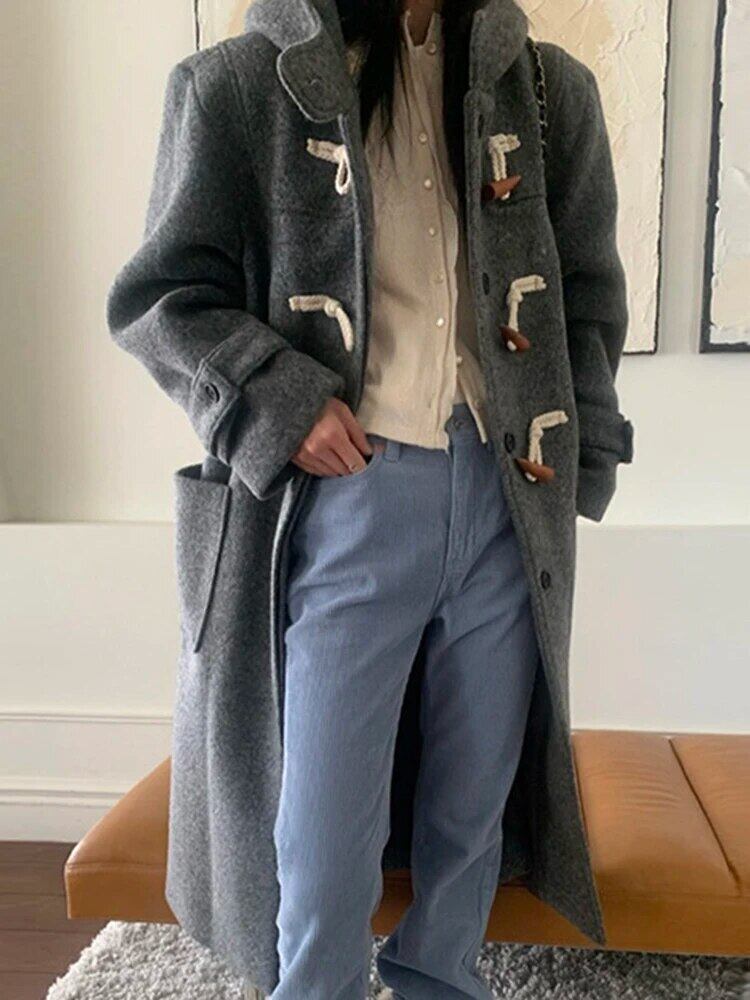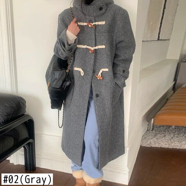 [EWQ] ホーンボタン ウールコート ルーズ フード付き ウール混 ロングジャケット 秋冬 16U5656 オータム 秋物 ウィンター 冬物