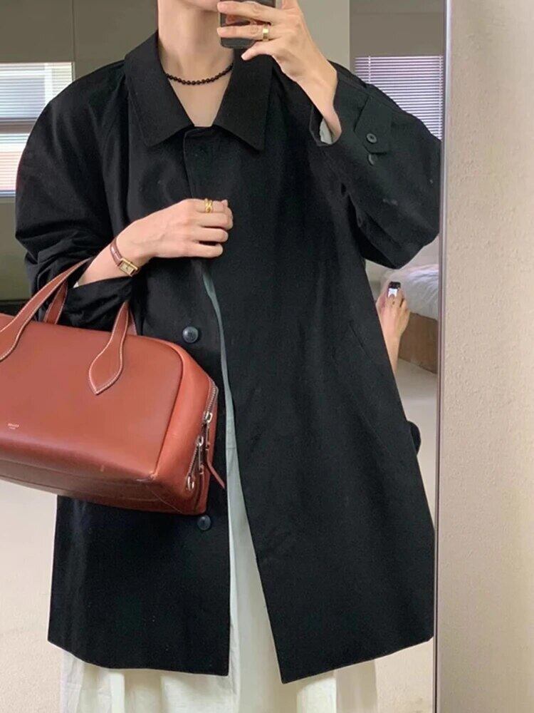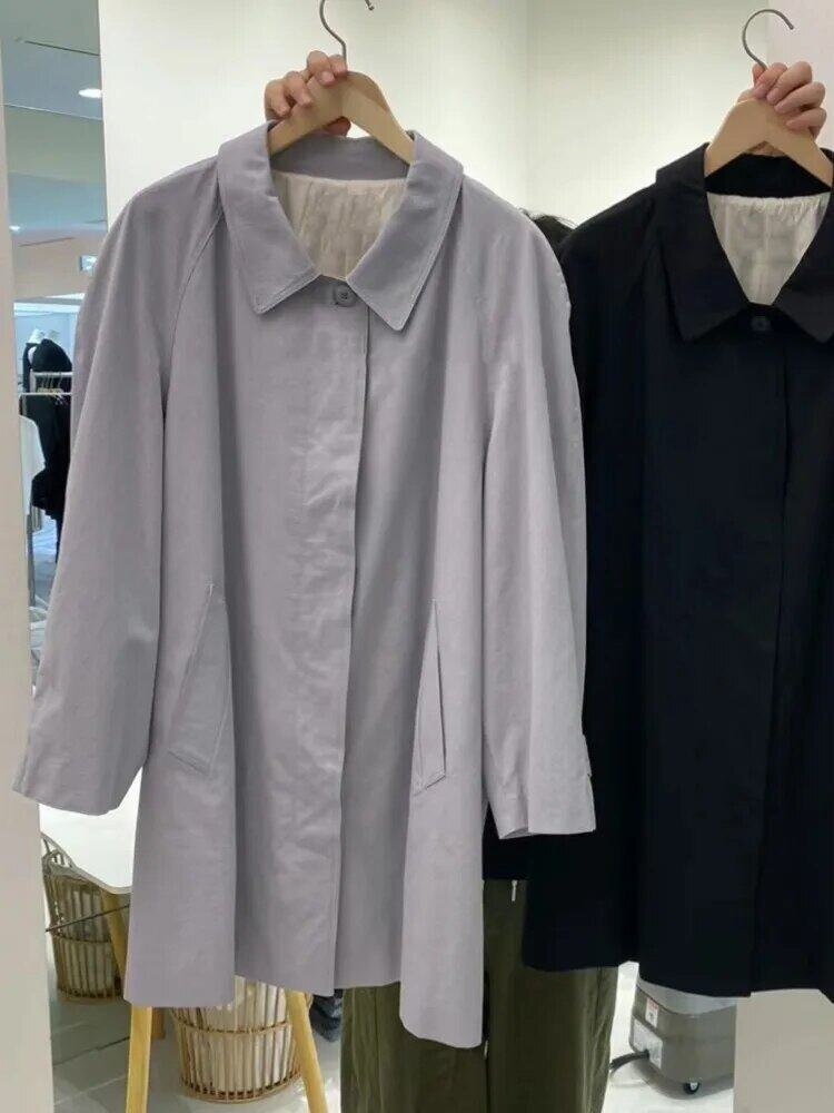 [EWQ] パープル シングルブレスト ウインドブレーカー ジャケット レディース 長袖 ルーズ Koean トレンチ コート 秋冬 16U4160 ロング オータム 秋物 ウィンター 冬物