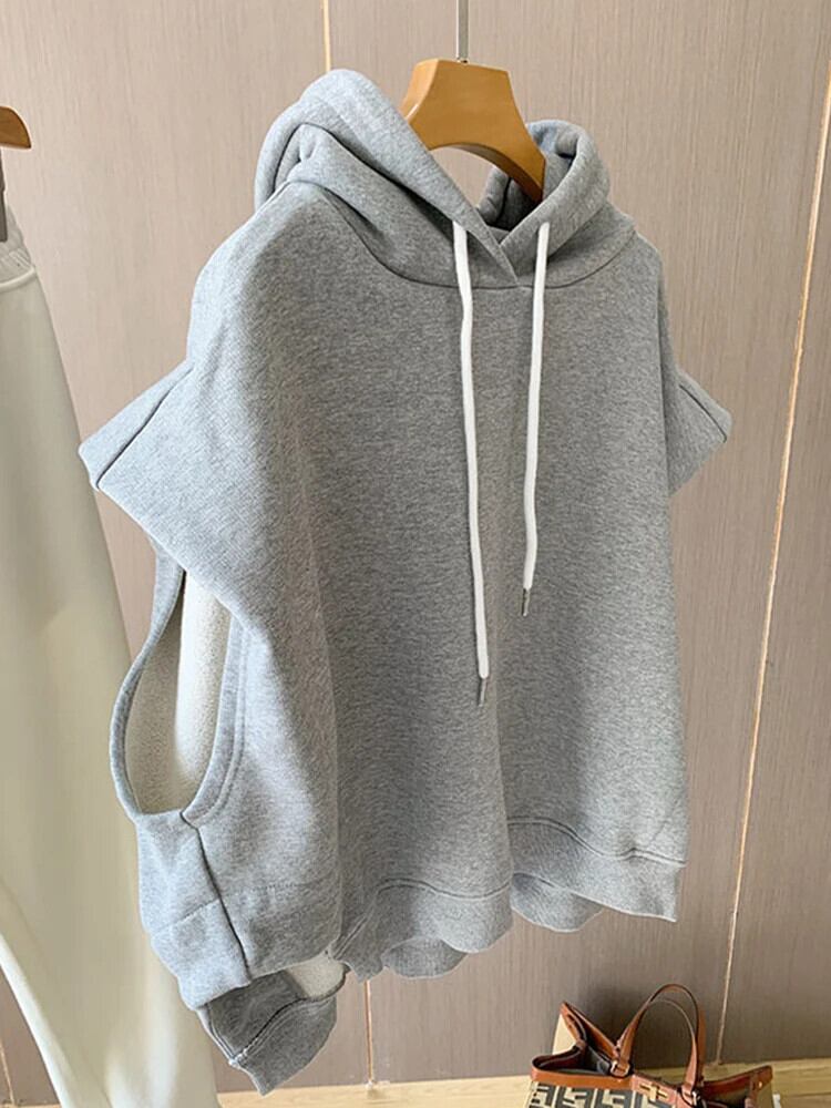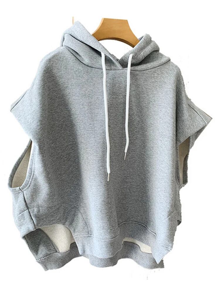 [EWQ] ストリートフード付き巾着ノースリーブプルオーバースウェットシャツゆったり厚手暖かいトップス秋 16U5633 オータム 秋物