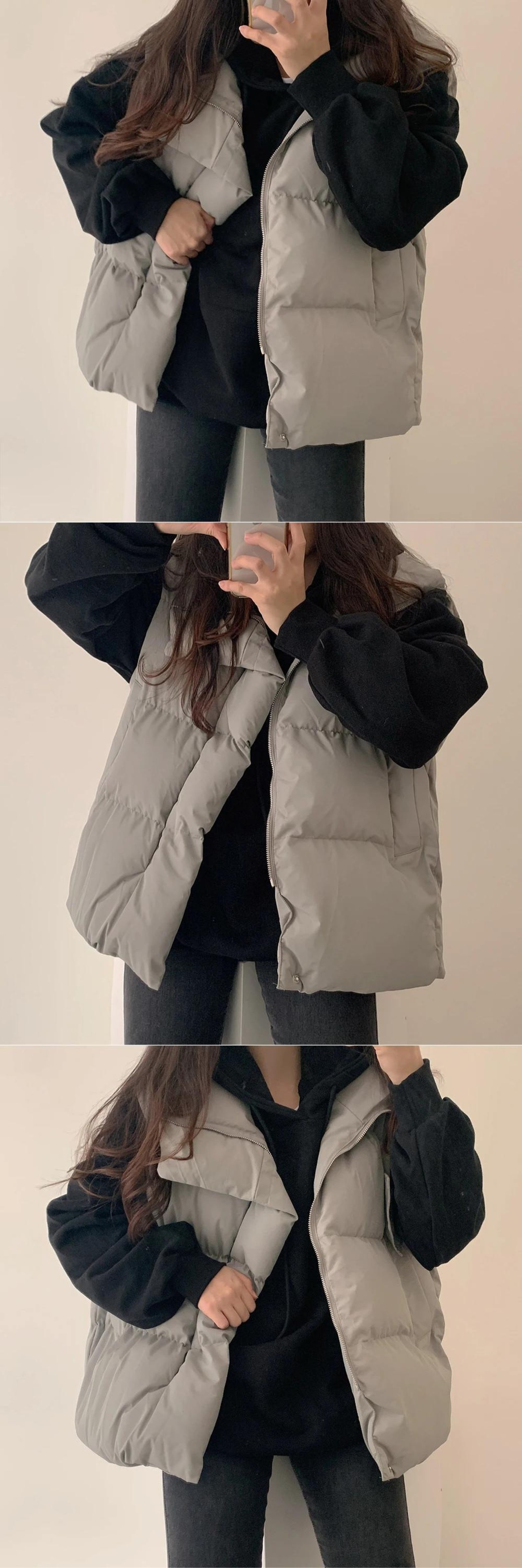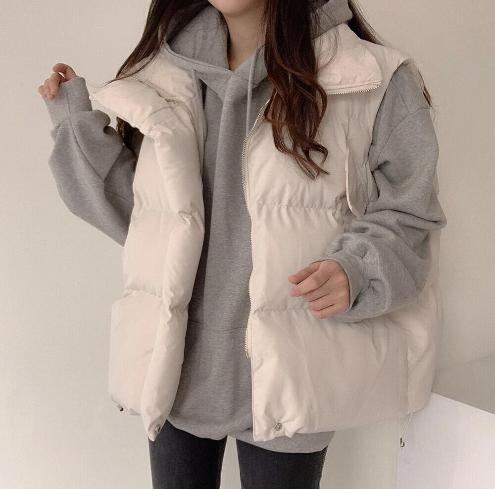 [EWQ] スタンドネックソリッドジッパーノースリーブコットンベスト緩いタンクトップ秋冬潮 16U5589 オータム 秋物 ウィンター 冬物 ソリッドカラー