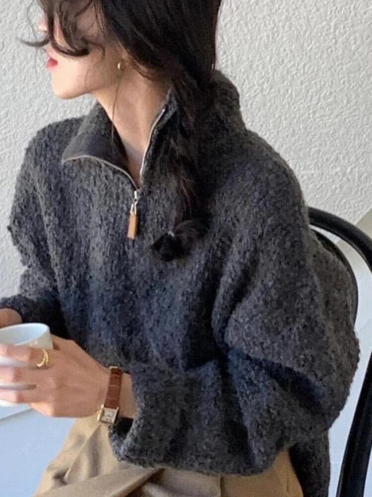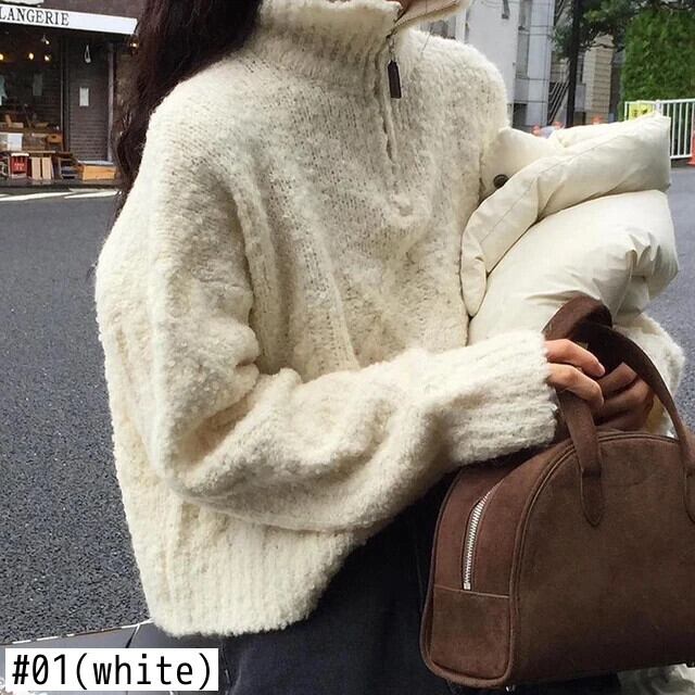 [EWQ] シック ルーズ タートルネック ジッパー 厚手 暖かい プルオーバー セーター ニット トップス 秋冬 オータム 秋物 ウィンター 冬物