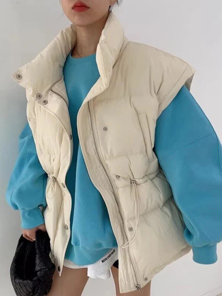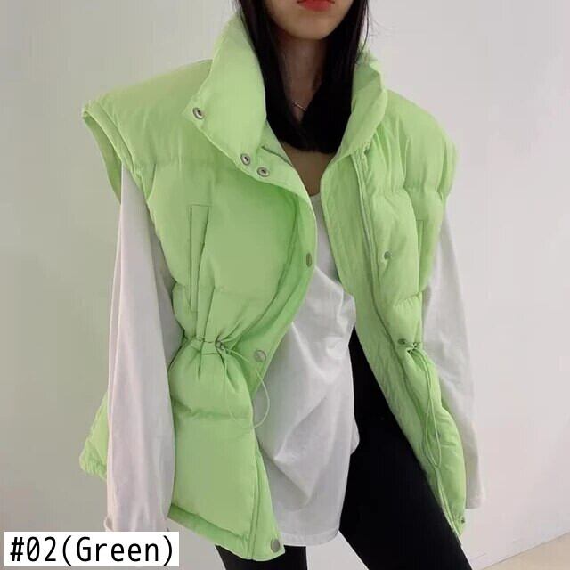 [EWQ] 気質スタンドネック巾着シングルブレストノースリーブコットンコートルーズベスト秋冬 オータム 秋物 ウィンター 冬物