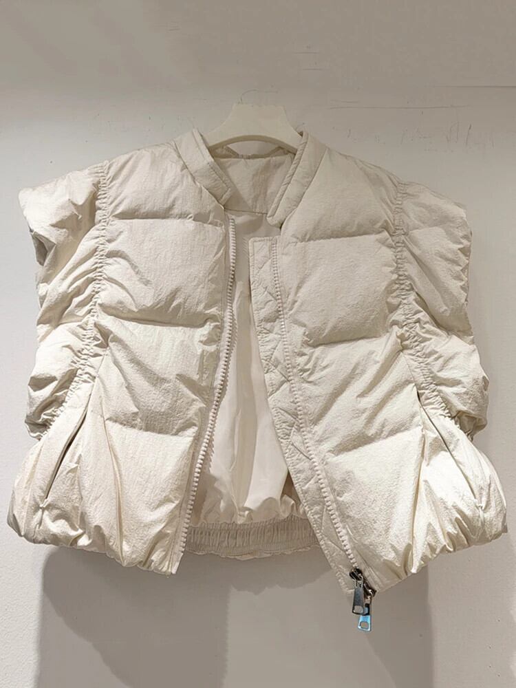 [EWQ] シック スタンドネック 無地 ジッパー コットン ベスト ゆったり ノースリーブ タンクトップ 秋冬 16U5681 オータム 秋物 ウィンター 冬物 ソリッドカラー