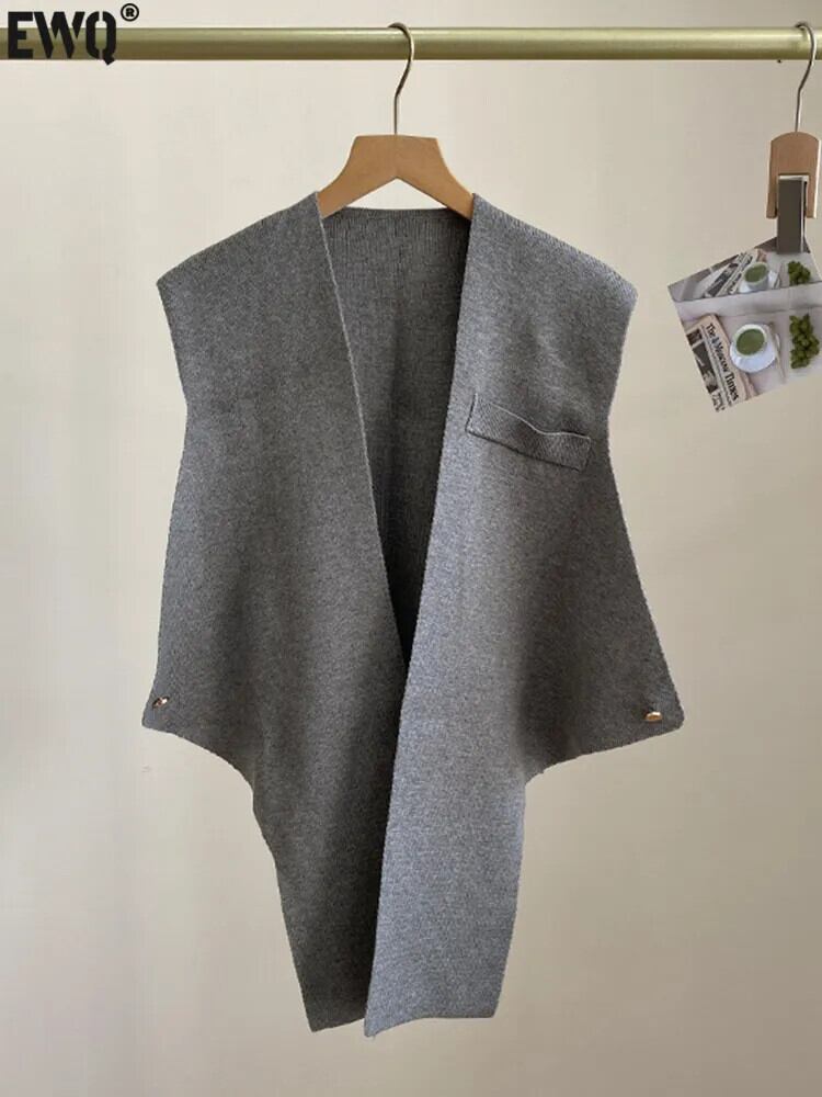 [EWQ] フェイク襟ショールオープンステッチセーターベスト金属ボタン装飾秋冬オールマッチ 16U4213 オータム 秋物 ウィンター 冬物