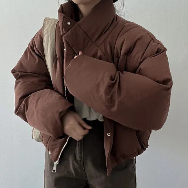 [EWQ] スタンドネックジッパー長袖厚手暖かい綿パッド入りコートルーズコーヒージャケット秋 16U5557 ロング コットン オータム 秋物