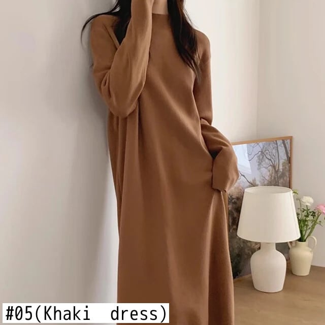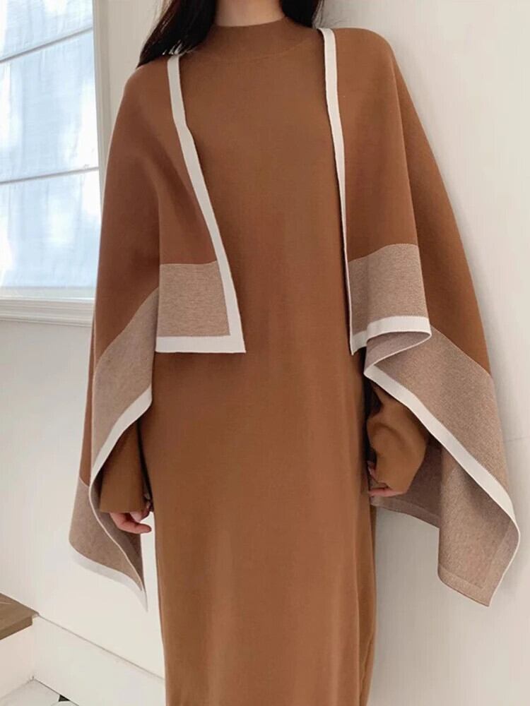 [EWQ] O ネックセータードレス長袖ドレス + コントラスト厚い大きショール秋冬 16U3823 ロング オータム 秋物 ウィンター 冬物 Oネック