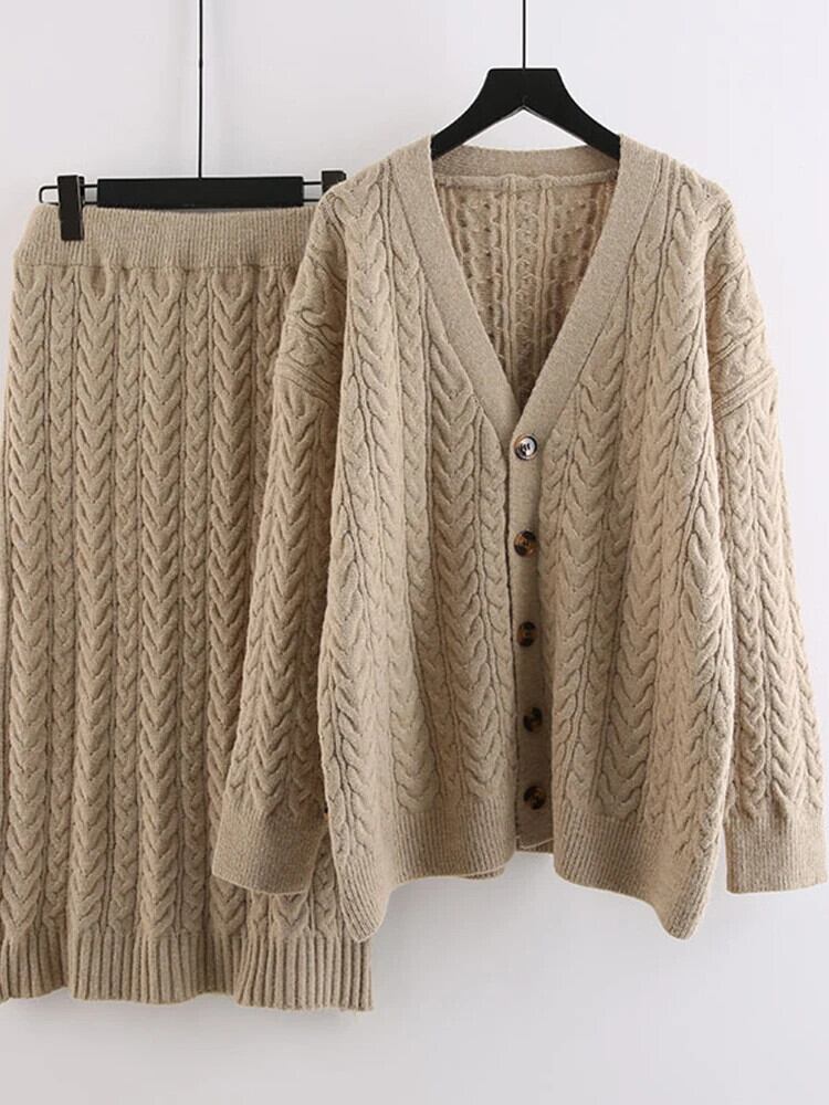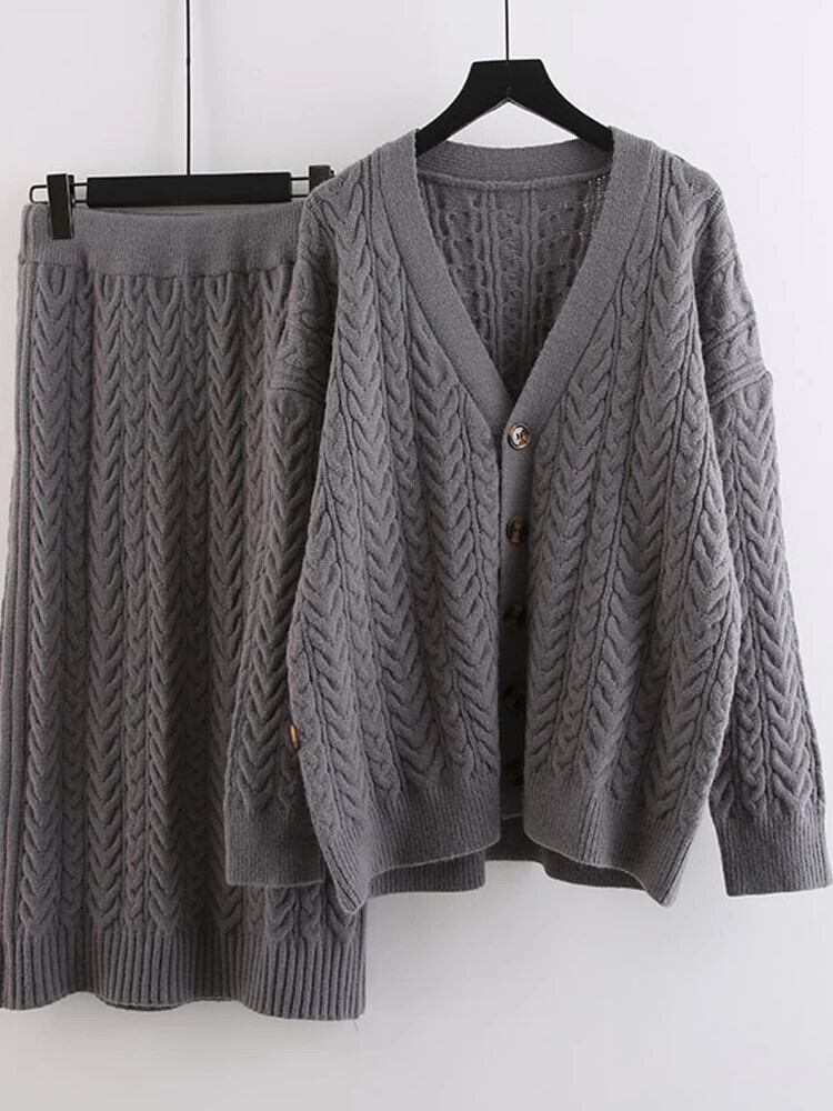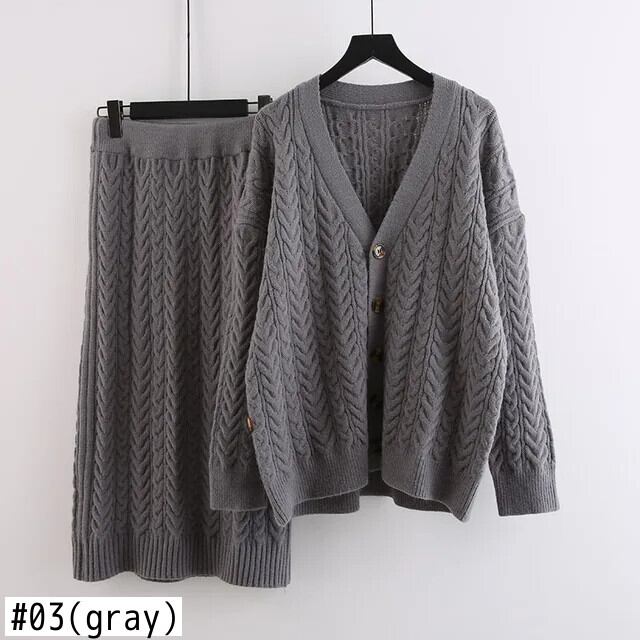 【EWQ】シックルーズツイスト柄2点セット ニット Vネックセーター+ウエストニットロングパンツ 秋 16U5540 オータム 秋物