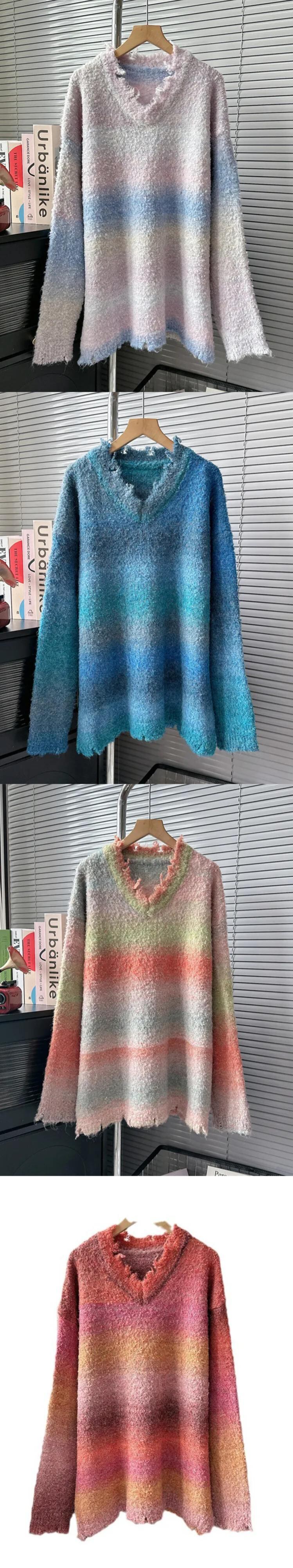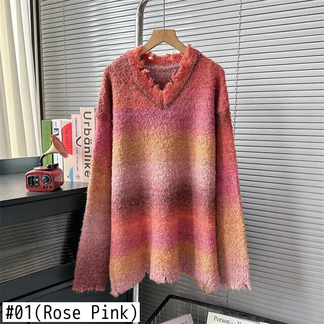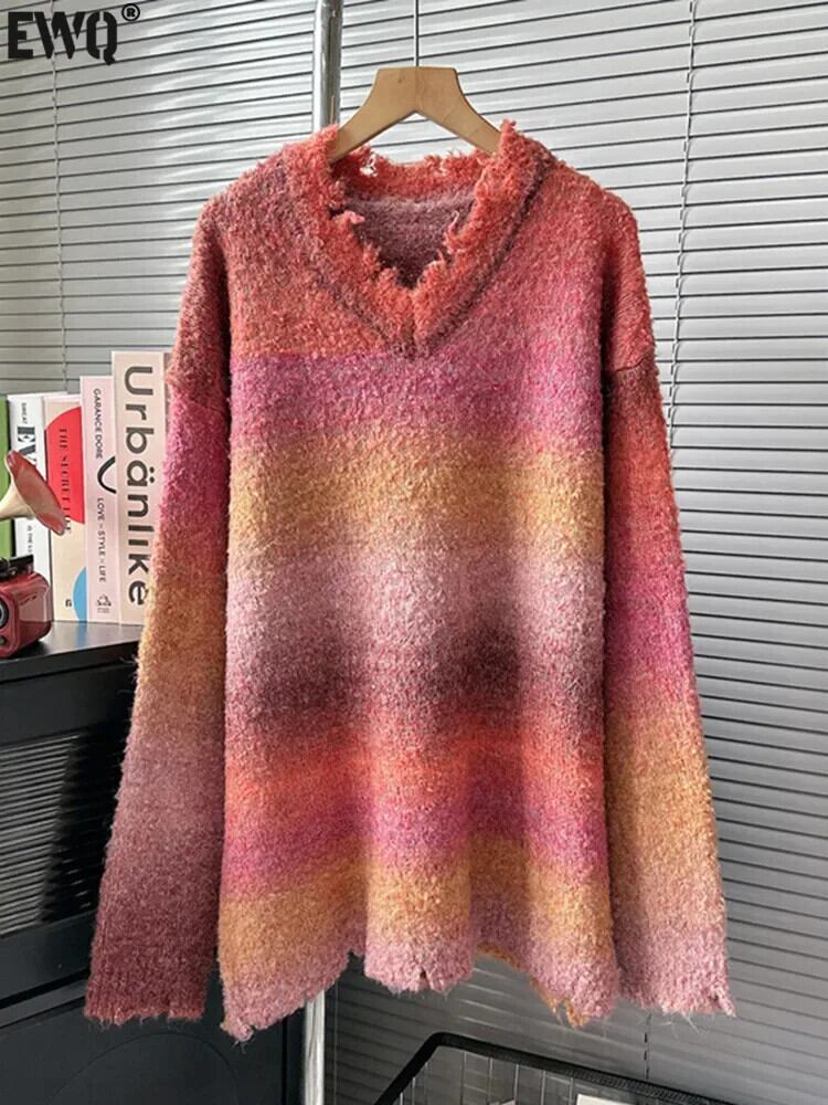 [EWQ] グラデーションカラープルオーバーセーターシックルーズ O ネック長袖ニットトップス秋 16U5539 ロング オータム 秋物 Oネック