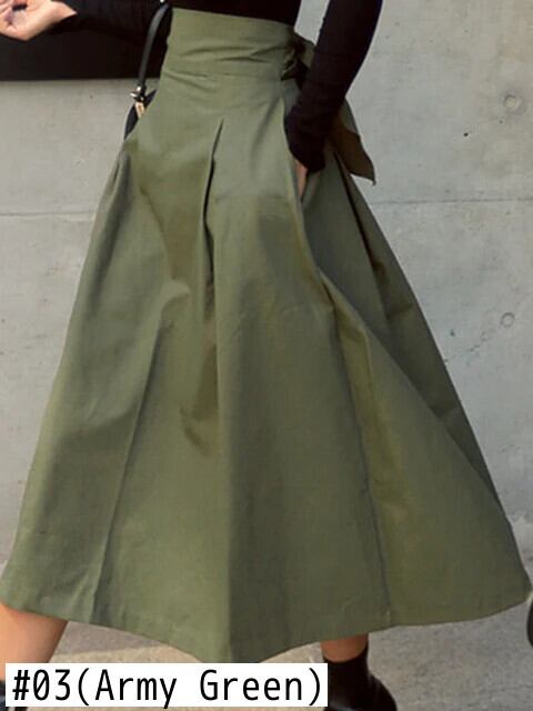 [EWQ] エレガントバックリボン包帯スカートハイウエストポケットミッドカーフスカート秋冬新作オールマッチ 16U5200 ハイウェスト オータム 秋物 ウィンター 冬物