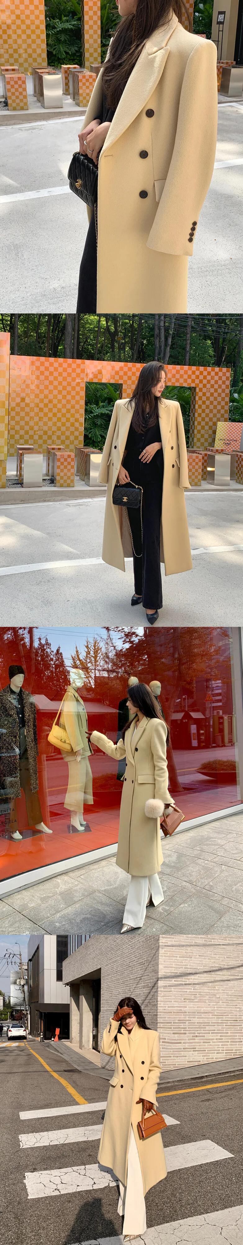 [EWQ] ノッチウールコート 厚手 暖かい 秋冬 タイド 長袖 ダブルブレスト オーバーコート ジャケット シュミシエ U49 ロング オータム 秋物 ウィンター 冬物