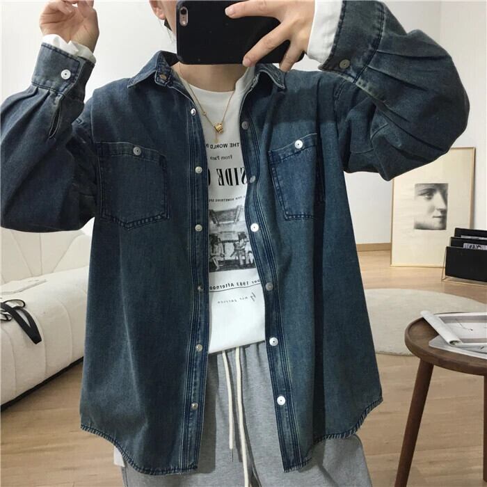 [EWQ] デニムシャツ レディース 長袖 シングルブレスト ゆったり 秋冬 トップス 16U5444 ロング オータム 秋物 ウィンター 冬物