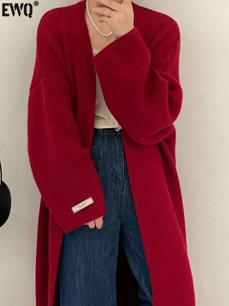 [EWQ] 厚手丈カーディガンコート長袖ルーズマルチカラーセータージャケット秋冬 16U4355 ロング オータム 秋物 ウィンター 冬物