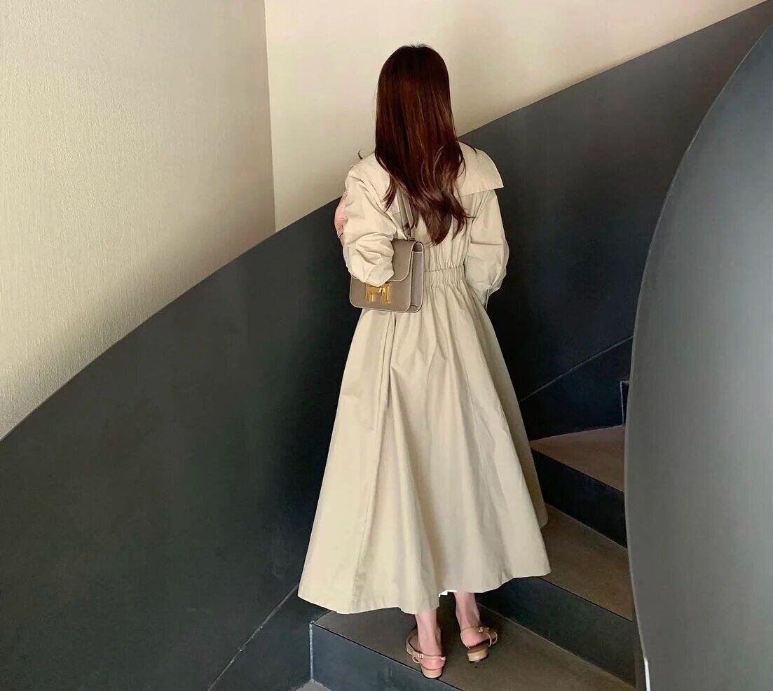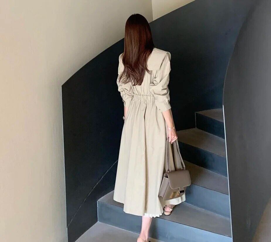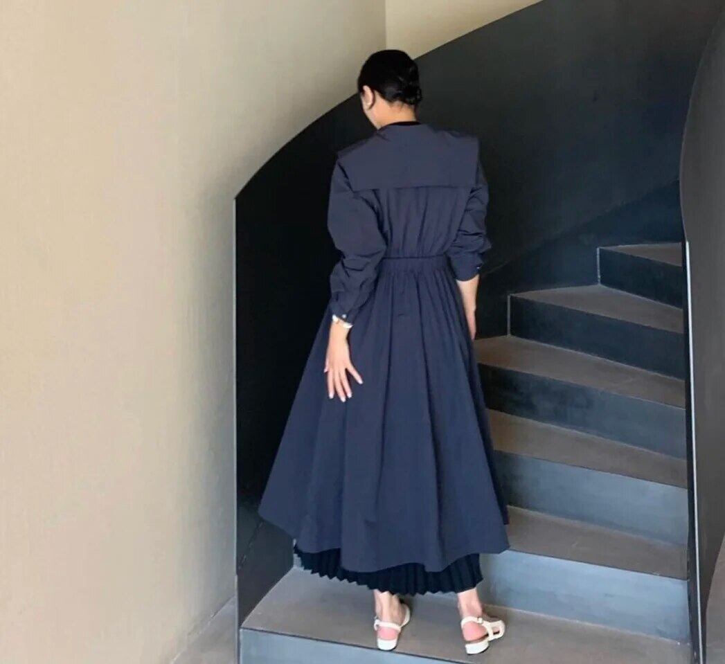 [EWQ] 気質ドレス長袖プリーツ弾性ウエストドレス Vestido 秋冬 16U5025 ロング エラスティック 伸縮 オータム 秋物 ウィンター 冬物