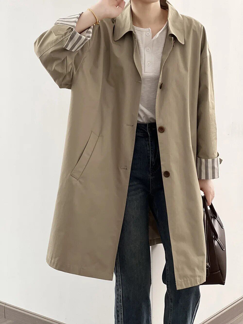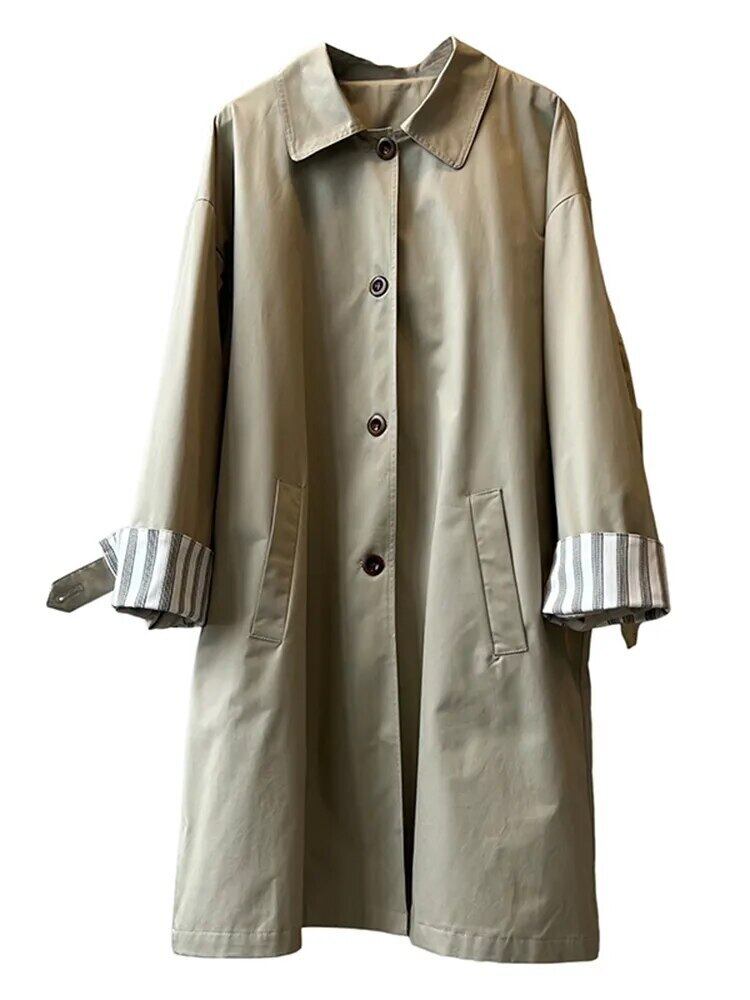 [EWQ] カフストライプパッチワークウインドブレーカーコートシングルブレストルーズ生き抜くトレンチ秋冬 16U5339 オータム 秋物 ウィンター 冬物