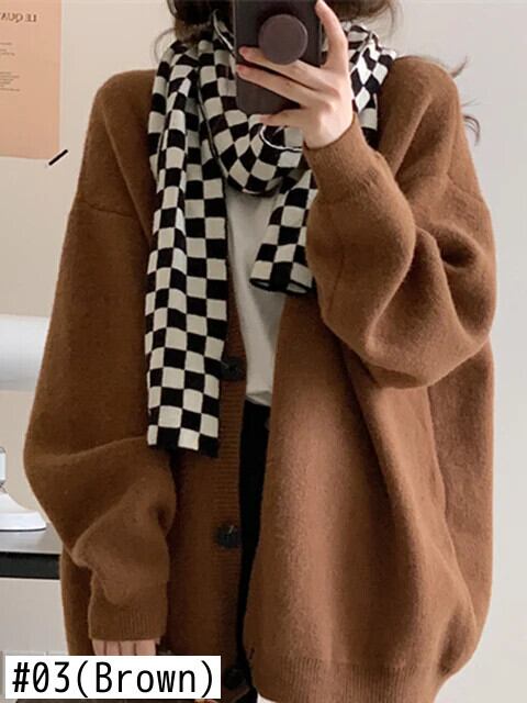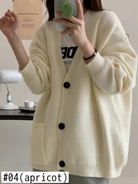 [EWQ] ビッグサイズアプリコットカーディガンコートニット長袖シングルブレストルーズセータージャケット秋冬 16U5435 ロング オータム 秋物 ウィンター 冬物