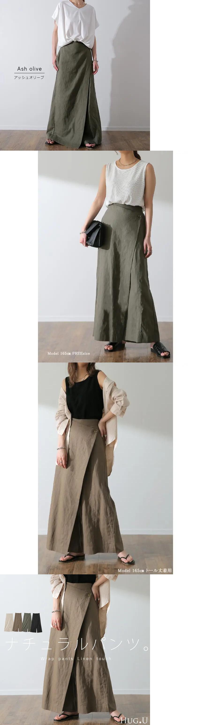 [EWQ] シック ソリッド イレギュラー スプリット ウエスト ワイドレッグ スカート ゆったり A ライン ミドル ロング スカート 秋冬 オータム 秋物 ウィンター 冬物 Aライン ワイドパンツ ソリッドカラー