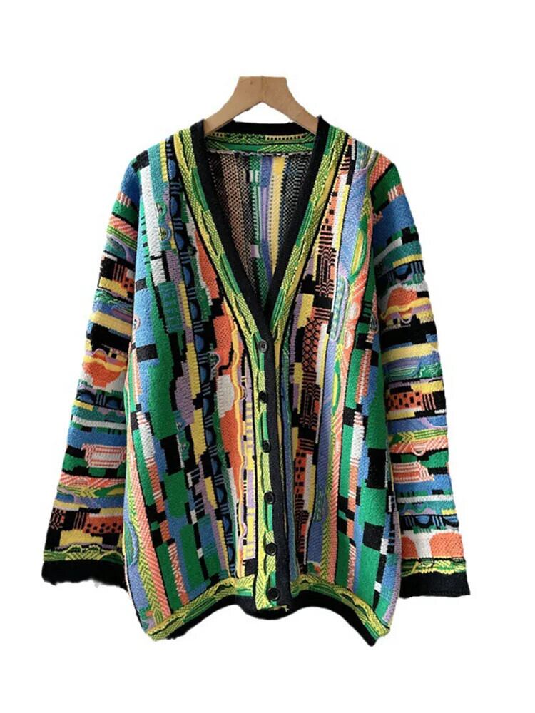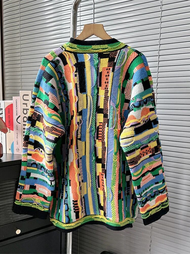 [EWQ] カラフルレインボーストライプニットカーディガンコートビッグサイズルーズセータージャケット秋冬 16U5373 オータム 秋物 ウィンター 冬物