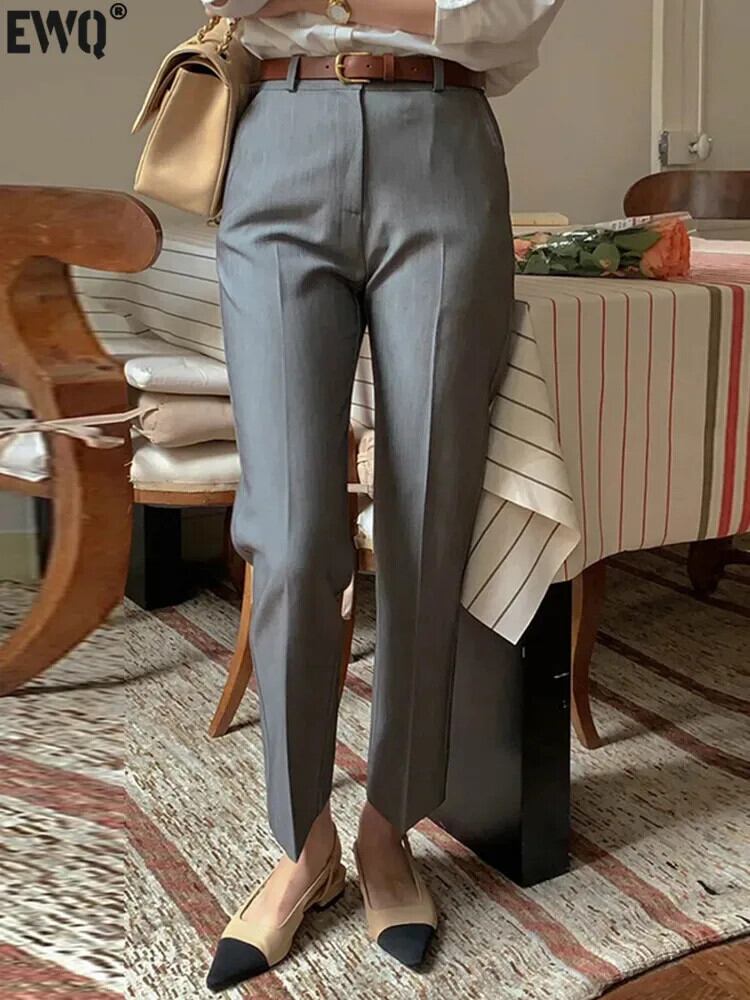 [EWQ] シンプル ソリッド ウエスト ドレープ ワイドレッグ ストレート スーツ パンツ オールマッチ グッド パンツ 秋冬 オータム 秋物 ウィンター 冬物 ワイドパンツ ソリッドカラー