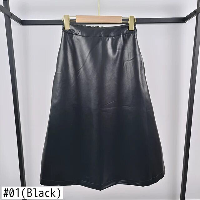 [EWQ] 黒万能 A ライン PU スカートウエストオールマッチ秋冬潮ファルダス 6U5398 ブラック オータム 秋物 ウィンター 冬物 Aライン
